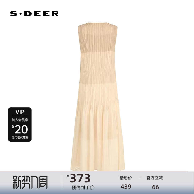 sdeer圣迪奥女装25年新品圆领撞色吊带两件套无袖连衣裙S25281261