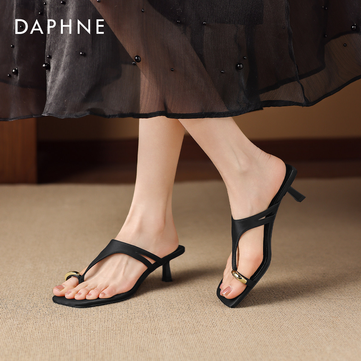 达芙妮夹趾凉拖鞋女外穿2026新款夏季细跟高跟女拖鞋性感露趾凉鞋