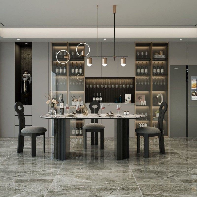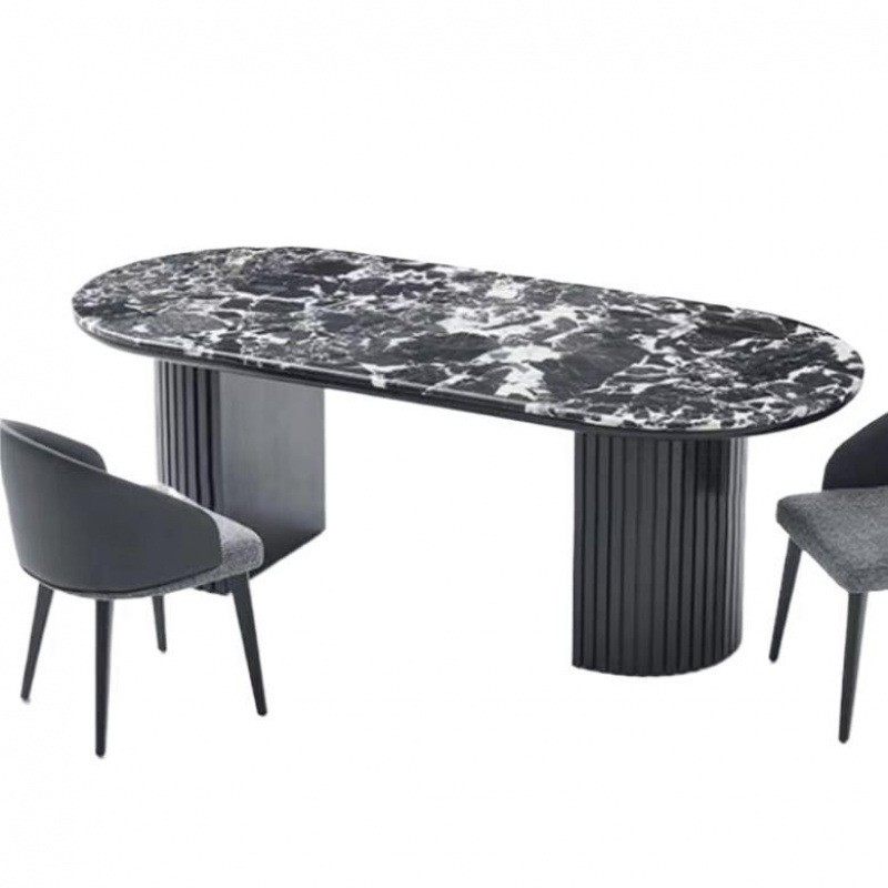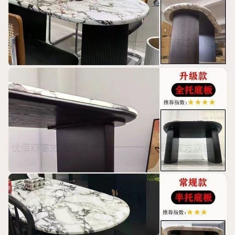 法式爆款的大理石餐桌岩板餐桌复古现代轻奢石简约椭圆餐桌椅组合