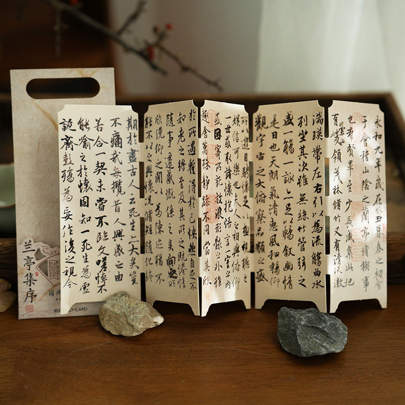 拾芥【国风文创】 江山如画中式屏风书签学生桌面摆件书法吊卡