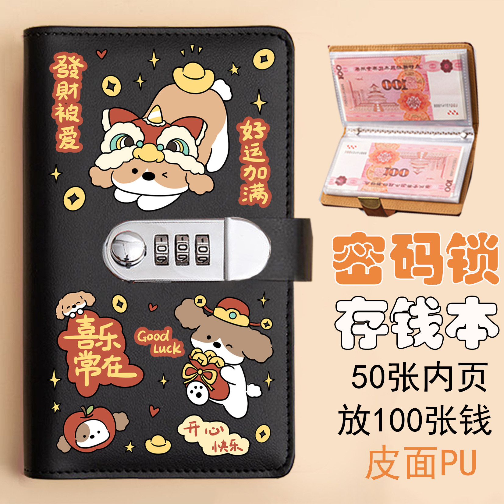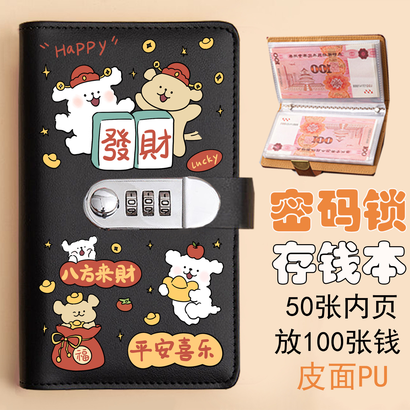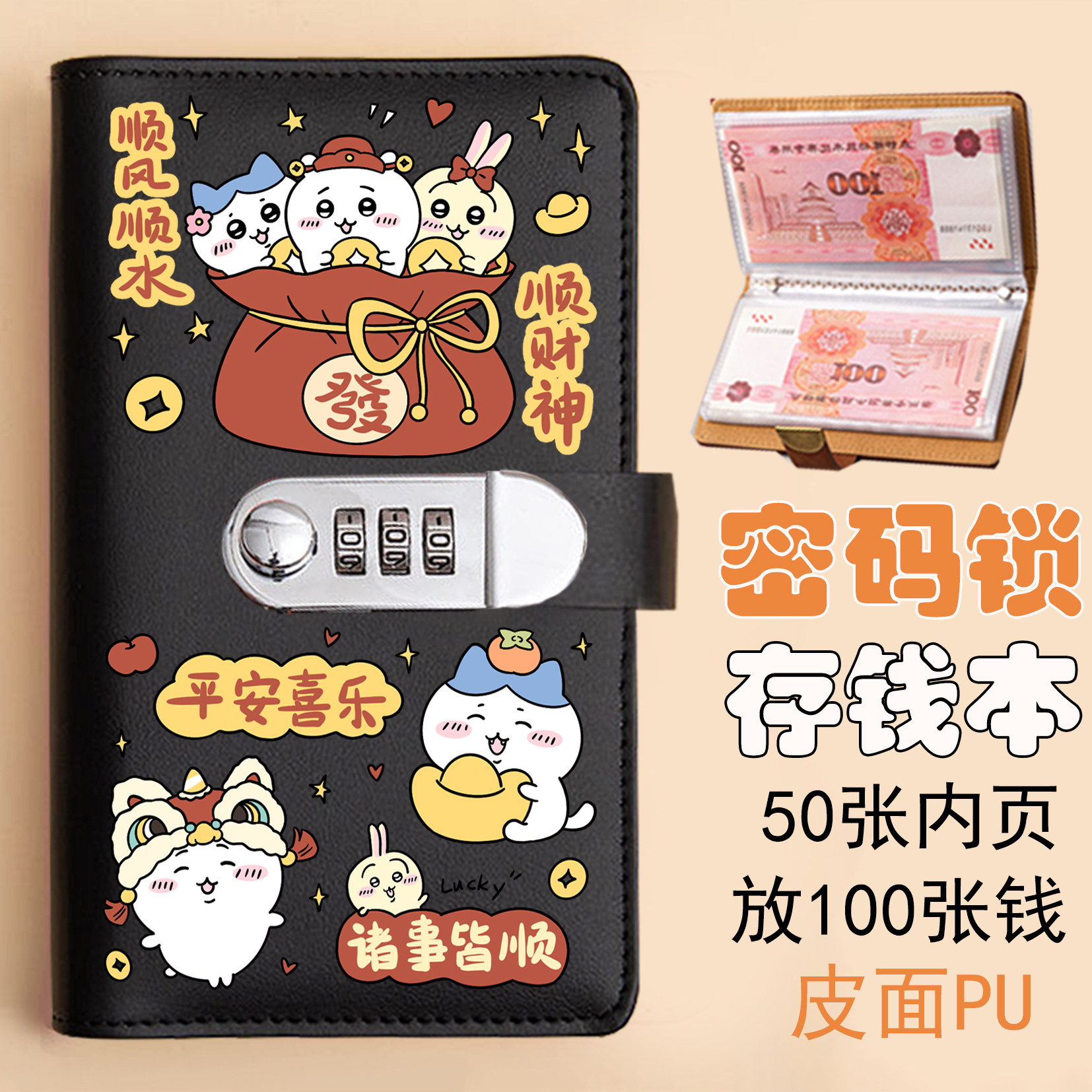 凯蒂猫存钱本可爱现金带锁手账本小学生零钱收纳袋攒钱本账册卡袋
