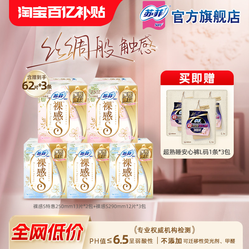 苏菲裸感s日夜用全周期卫生巾轻薄透气姨妈巾官方正品
