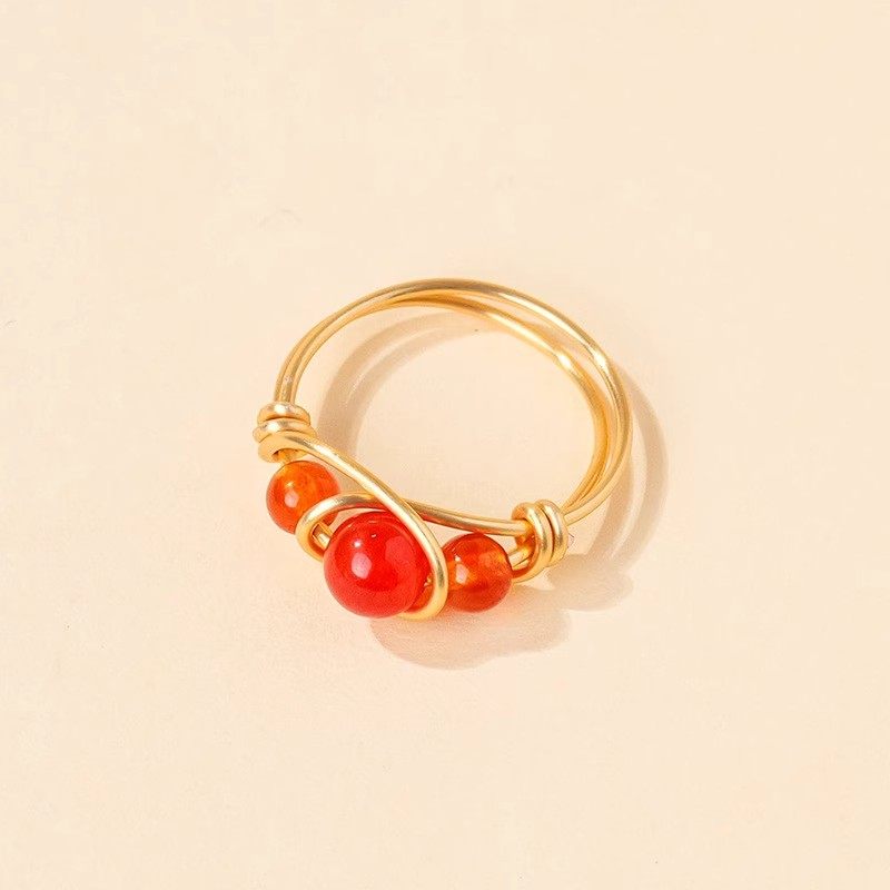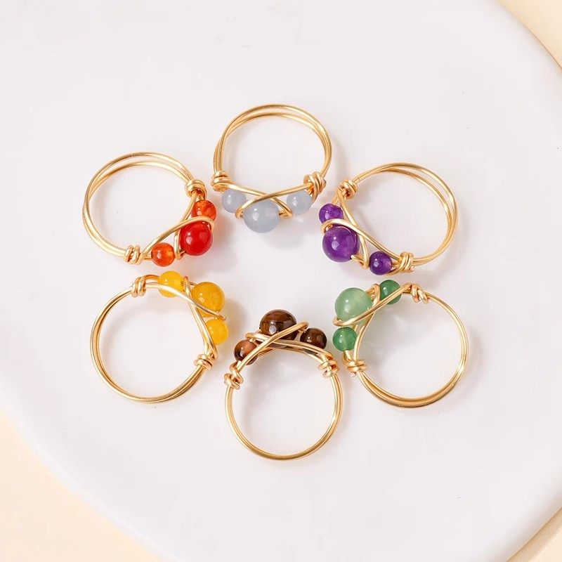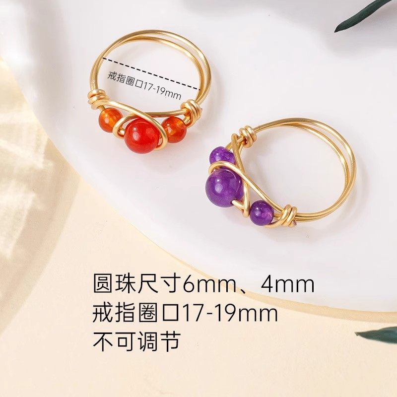 亚马逊天然水晶玛瑙珠金色手工缠绕水晶戒指女生欧美时尚饰品