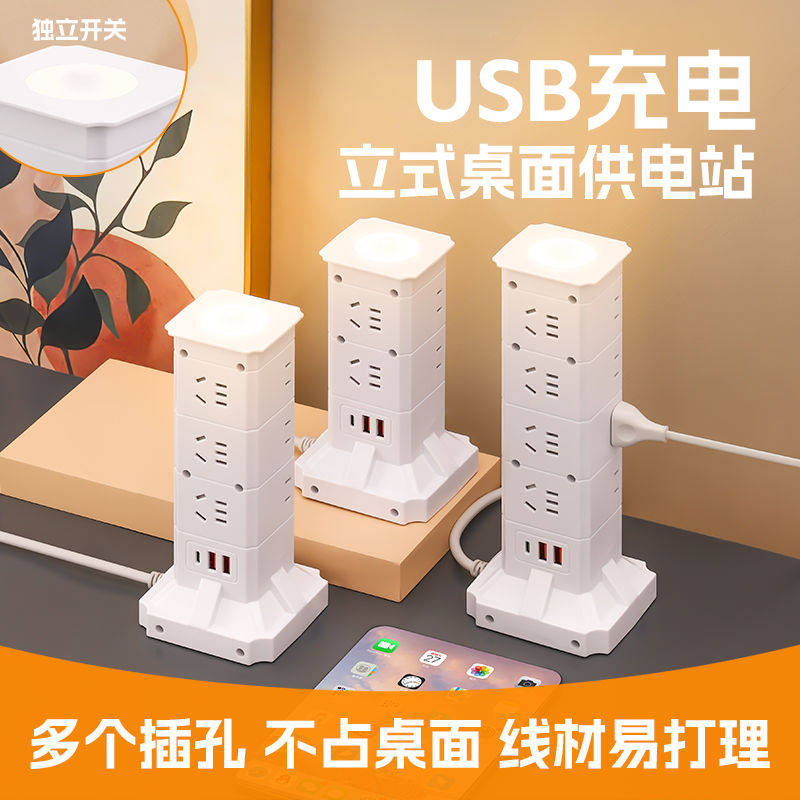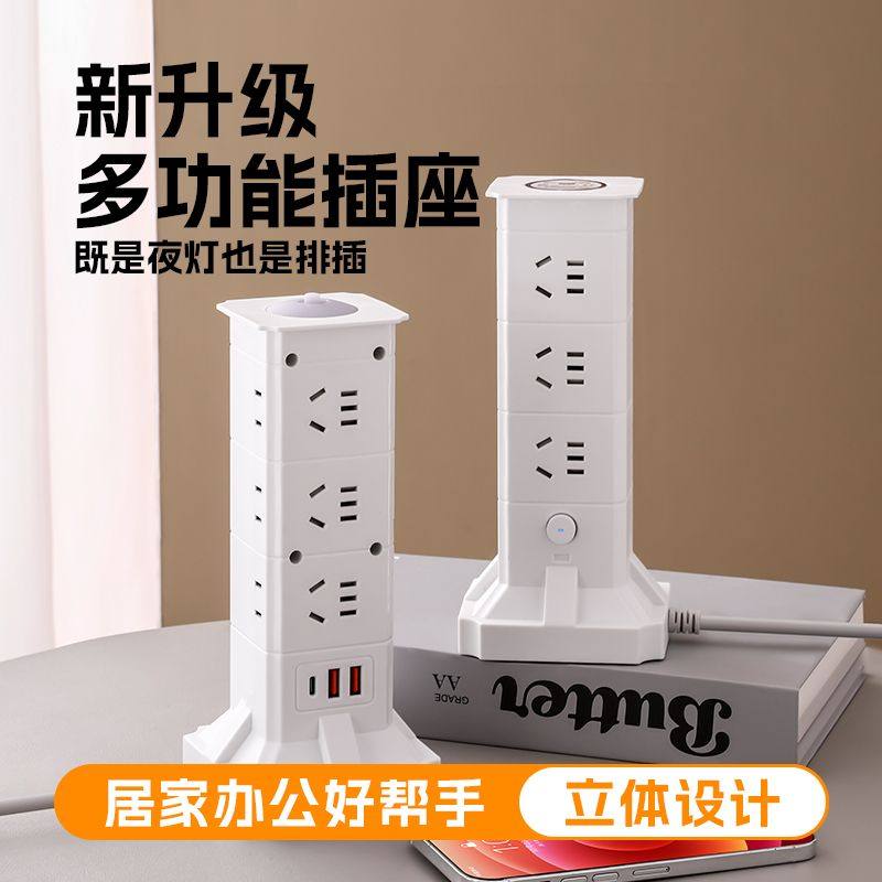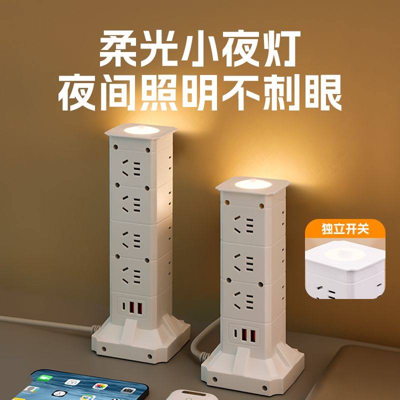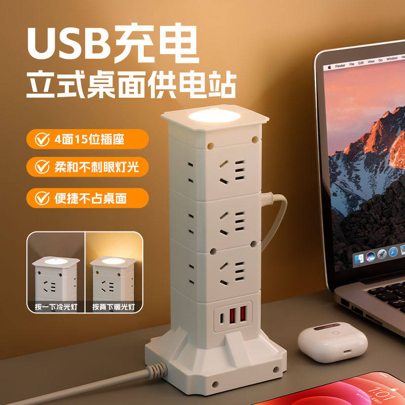 魔方立式插座多功能多孔usb排插带夜灯转换器家用桌面插排接线板