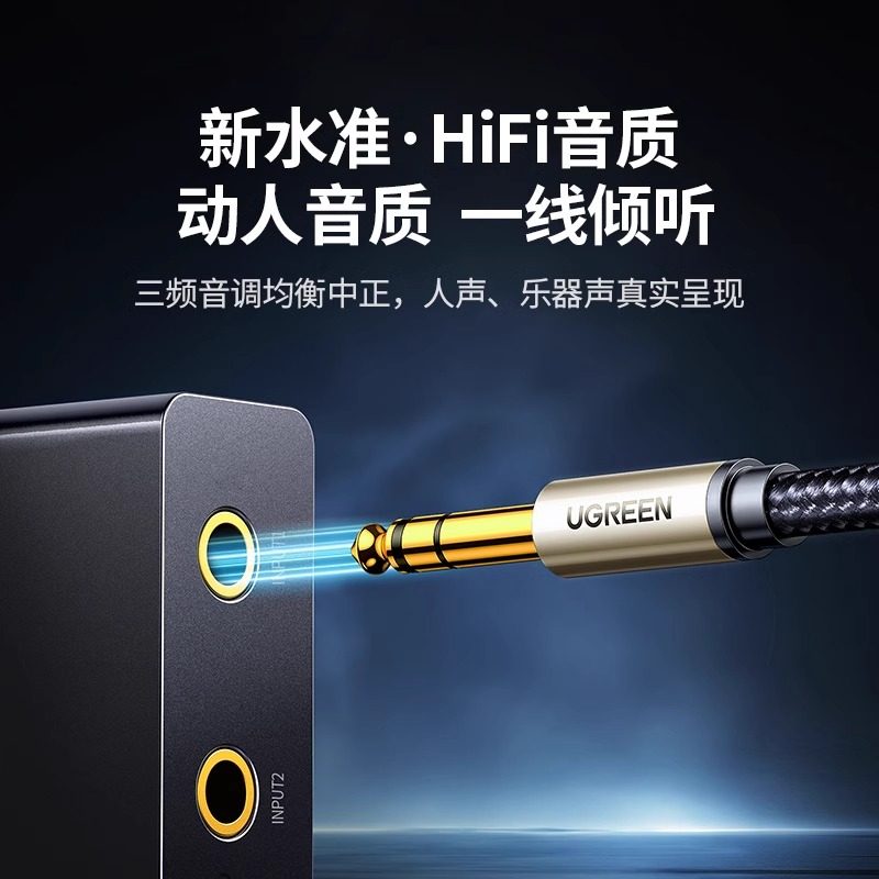 绿联3.5转6.5音频线连接手机电脑音响电吉他电子钢琴6.35mm转接头