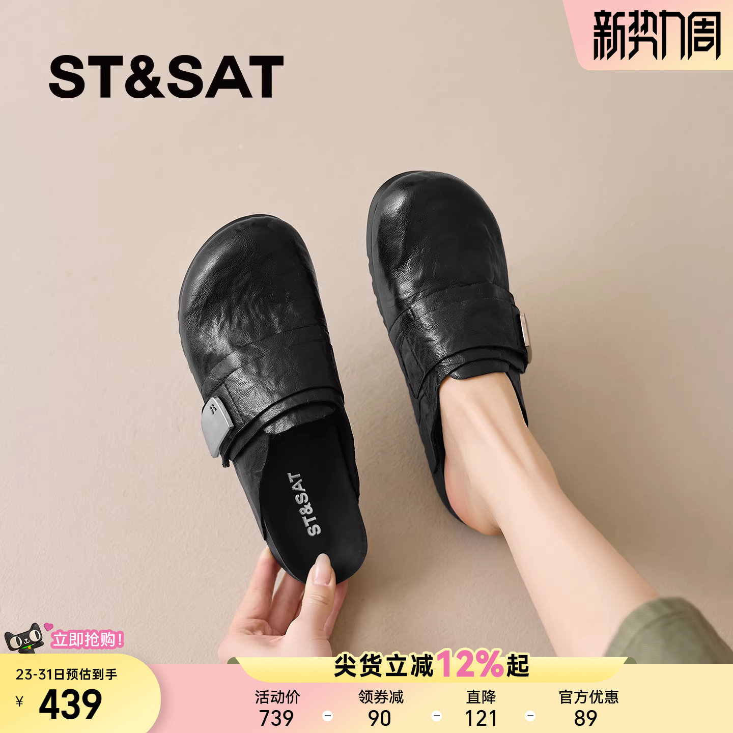 星期六一脚蹬勃肯鞋女外穿拖鞋新款真皮包头半拖ins风韩系沙滩鞋