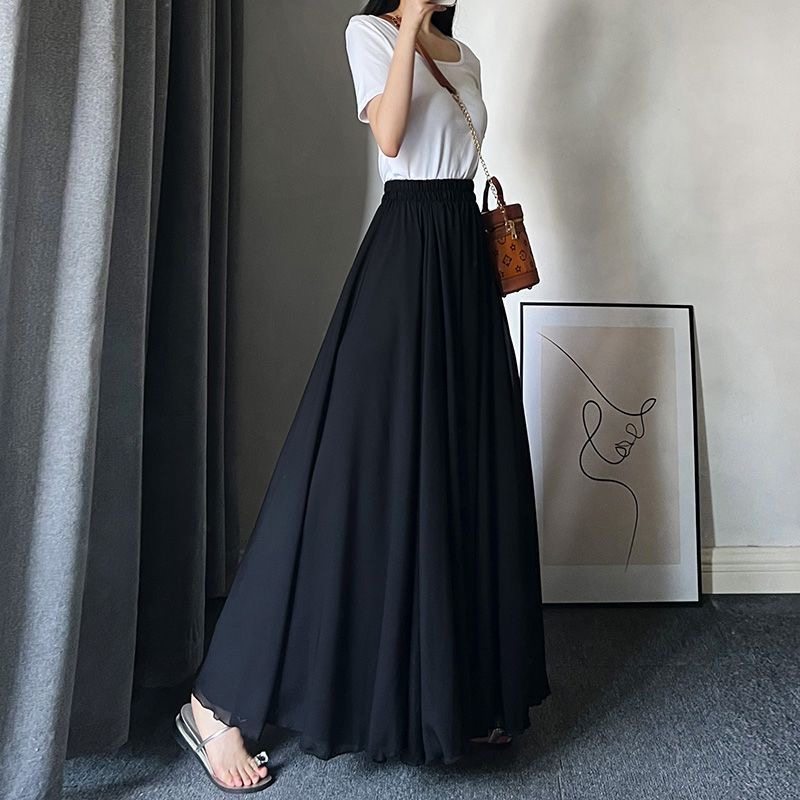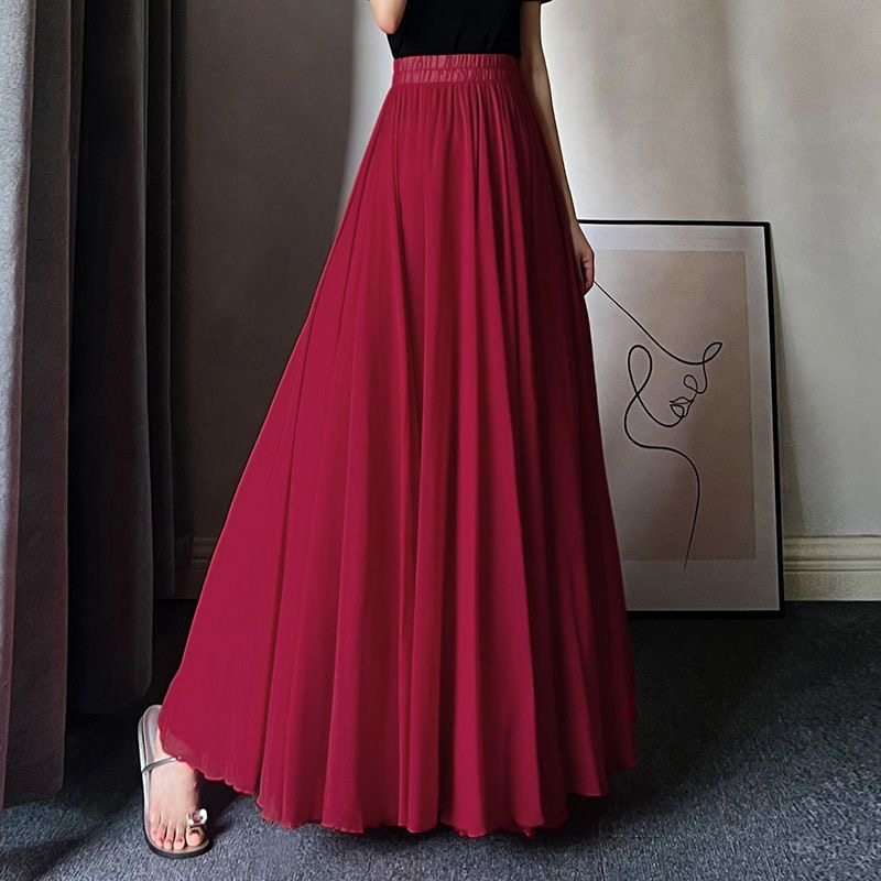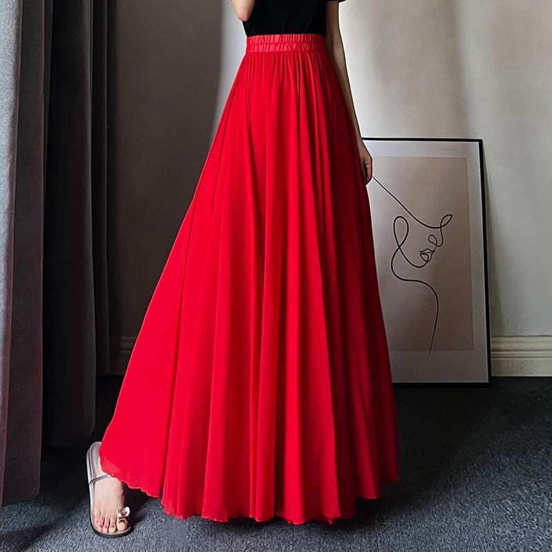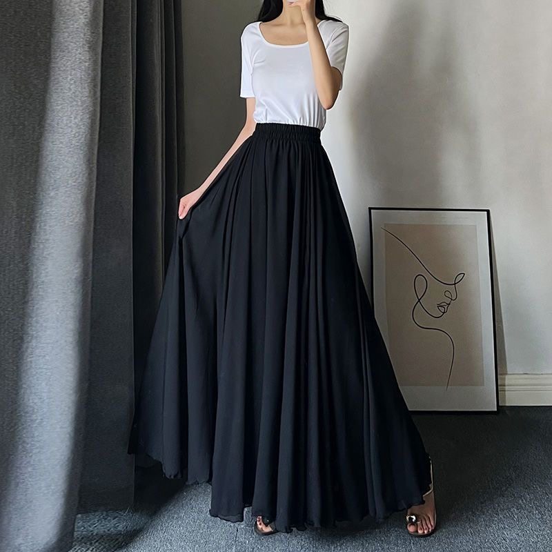 新款双层雪纺半身裙子夏季白色720度大摆裙新疆舞现代舞蹈裙