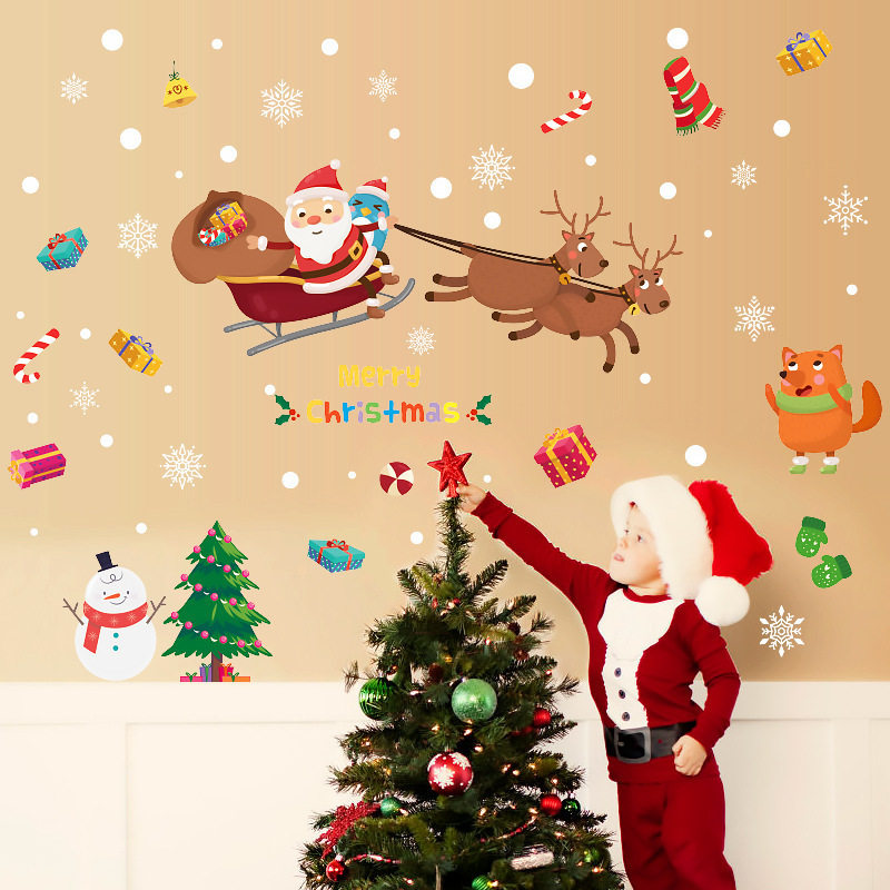 有袋【HM92034ds】圣诞节装饰墙贴新年春节店铺橱窗玻璃装饰贴纸