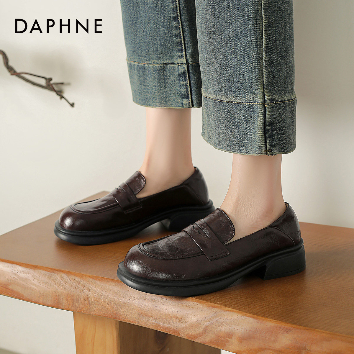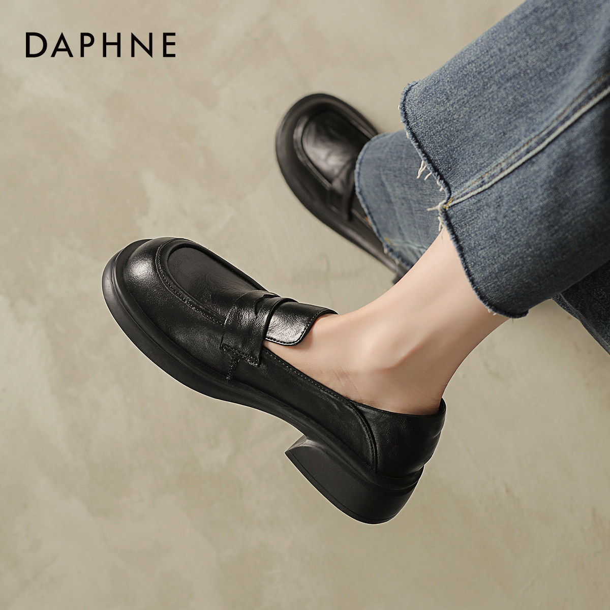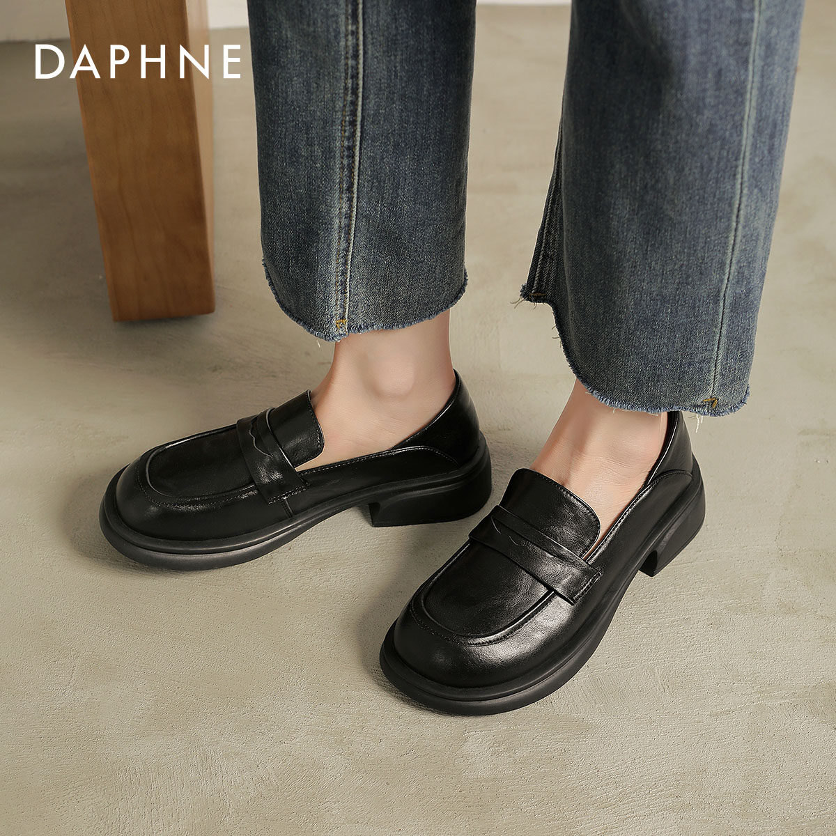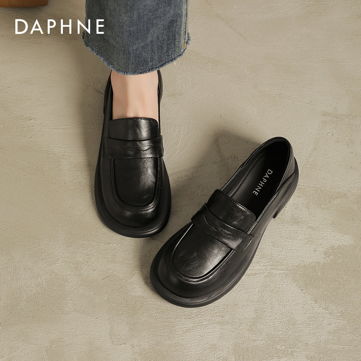 达芙妮黑色厚底乐福鞋女2026新款春季圆头单鞋软底英伦风小jk皮鞋