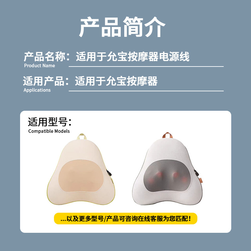 适用于允宝按摩器充电线适配器12.8V颈椎按摩仪12v按摩靠垫抱枕腰椎电源