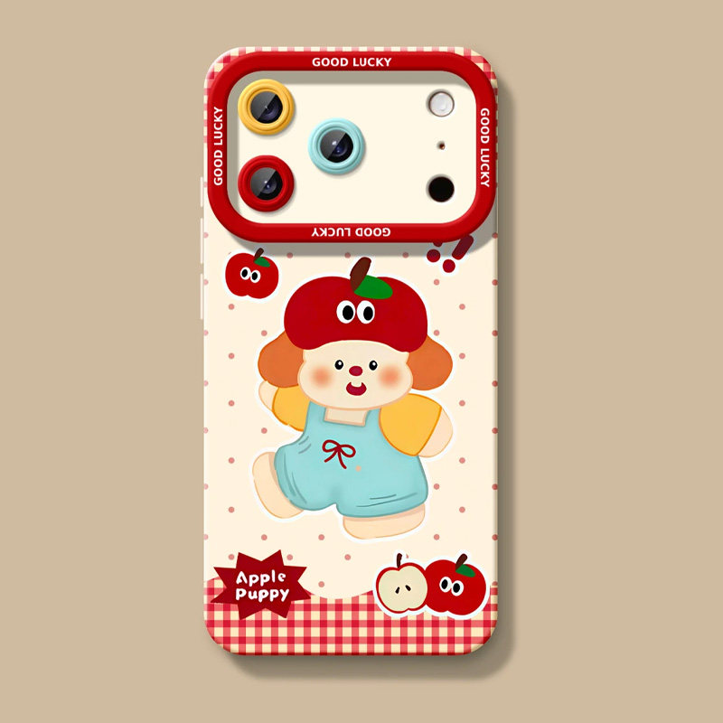 格纹苹果小狗适用苹果16promax手机壳iPhone15卡通动漫14promax可爱13日韩12创意16个性17promax磨砂天使眼11