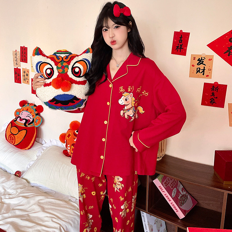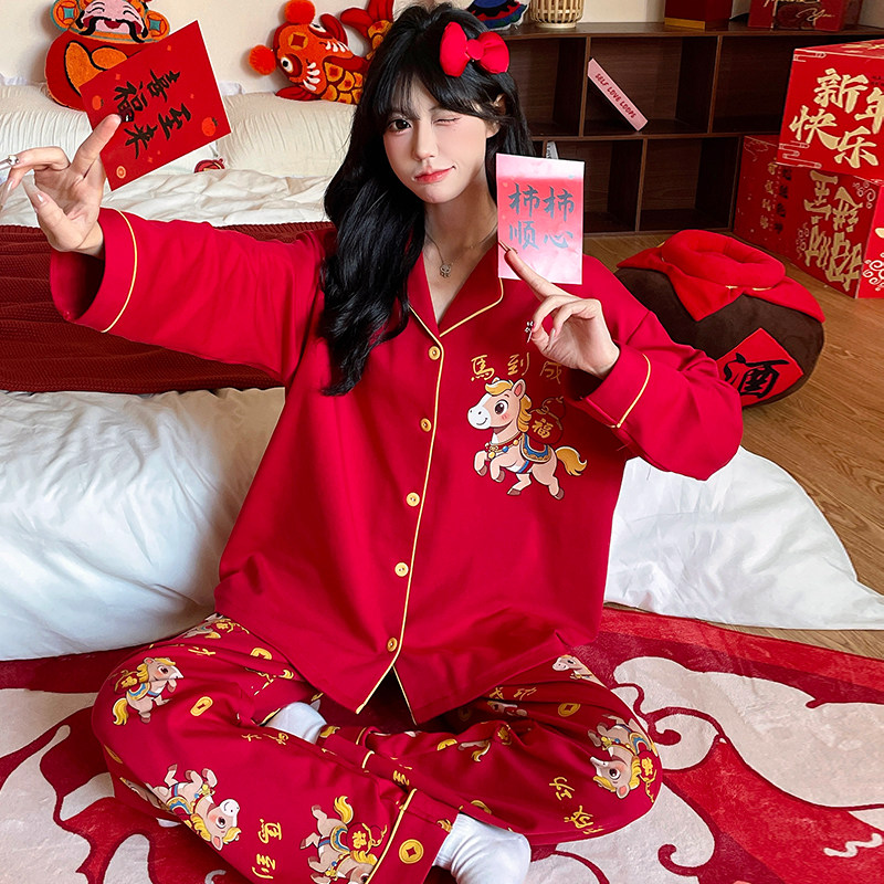 红色睡衣女可外穿冬高级感本命年马年衣服新年2026纯棉家居服女款