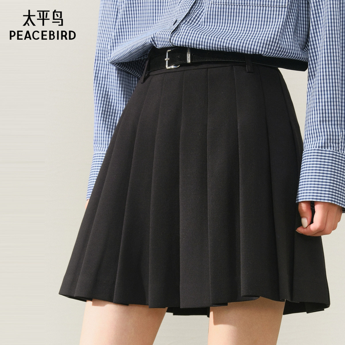 【商场同款】太平鸟百褶A字半身裙女25新款品质黑色短裙A1GEF4164
