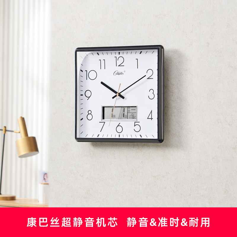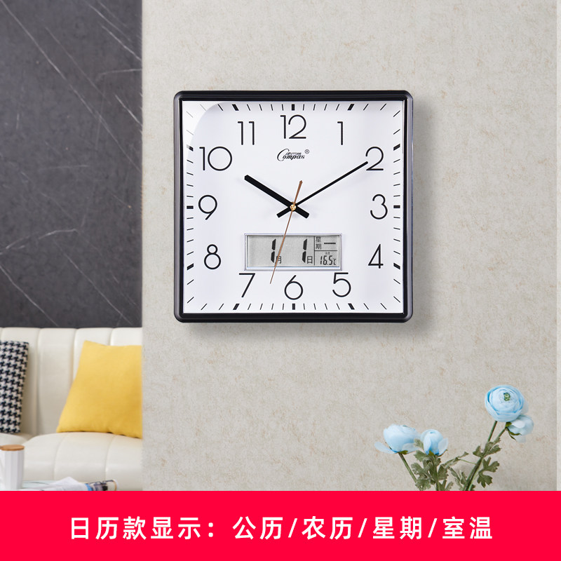 新款大吉大利客厅家用时尚双日历静音挂钟万年历现代温度钟表时钟