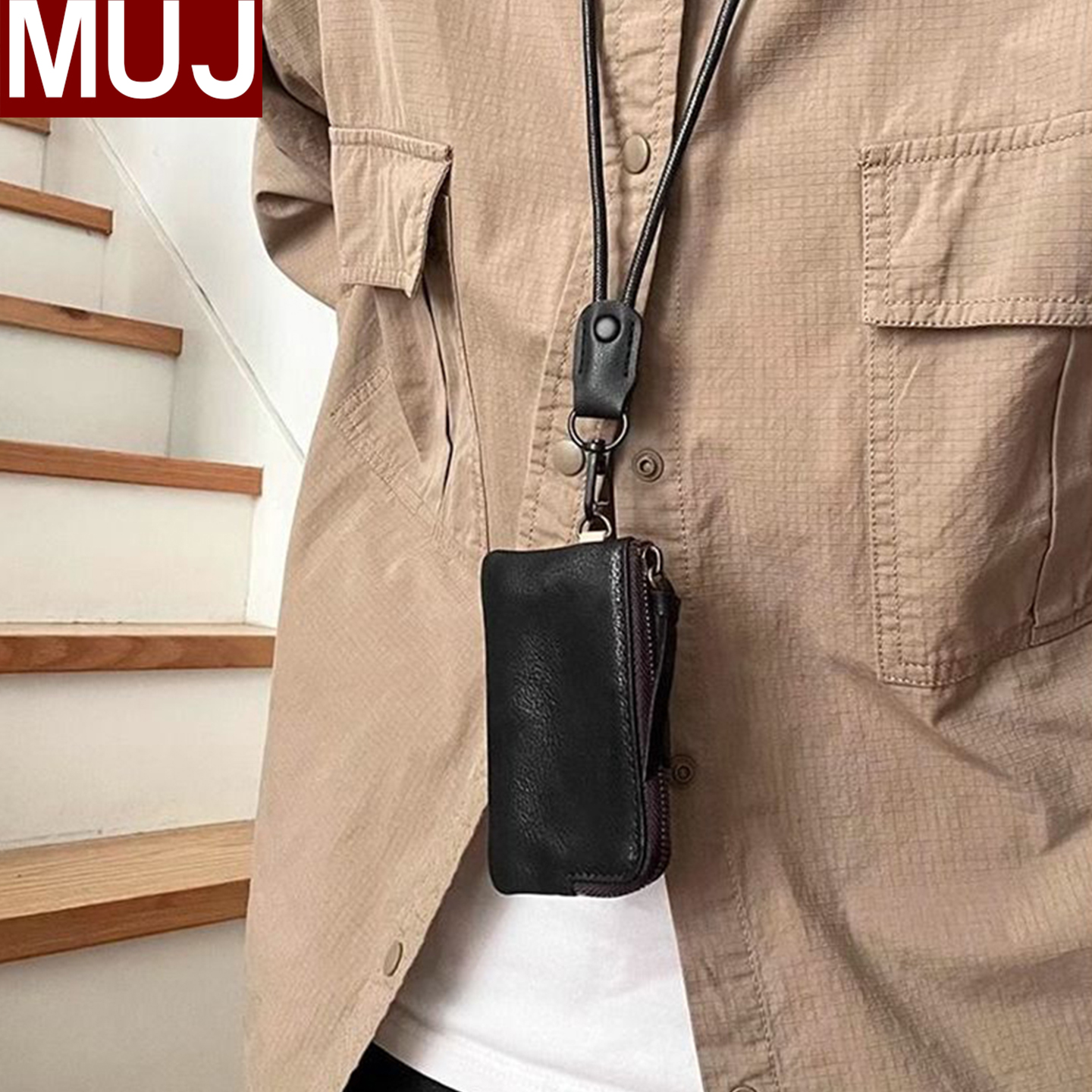 无印MUJ复古轻薄简约休闲多功能黑色挂脖潮款精致迷你零钱钥匙包