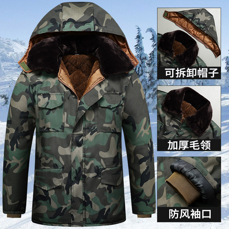冬季迷彩棉大衣男防水加绒中长款棉服加厚保暖冷库防寒服劳保棉袄