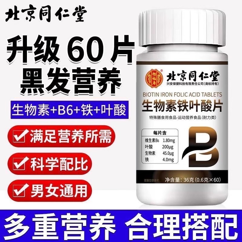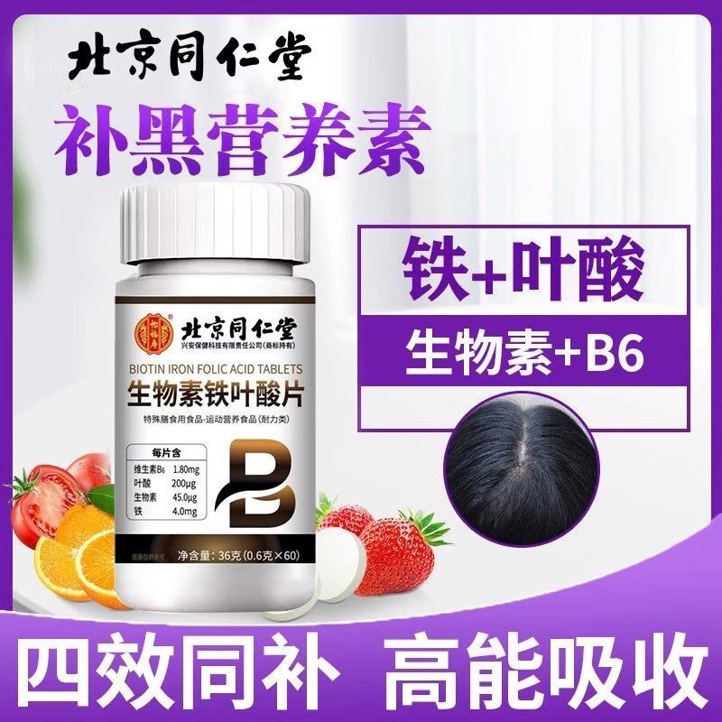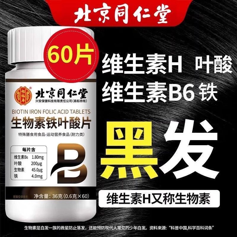 北京同仁堂维生素h片治黑发片白头发根转黑维生素正品体质功效