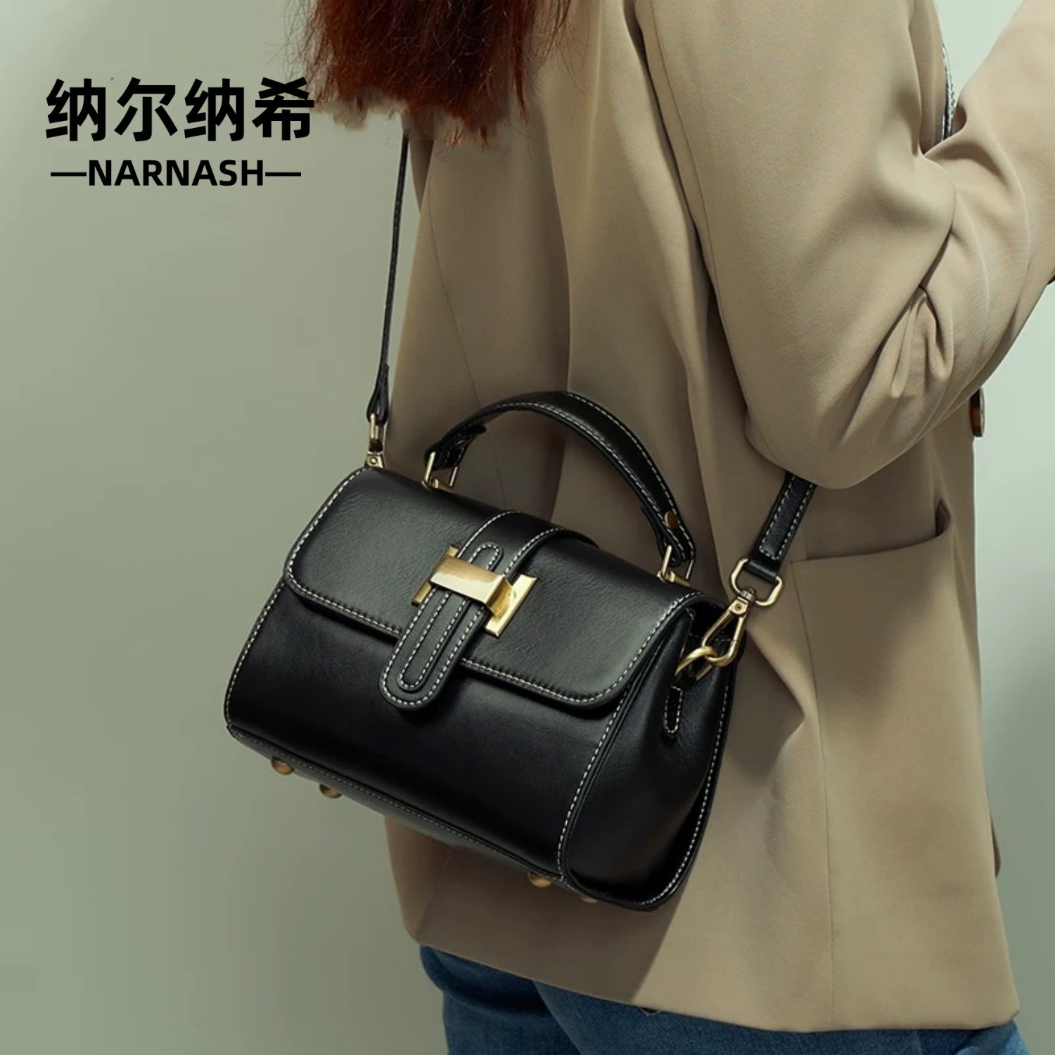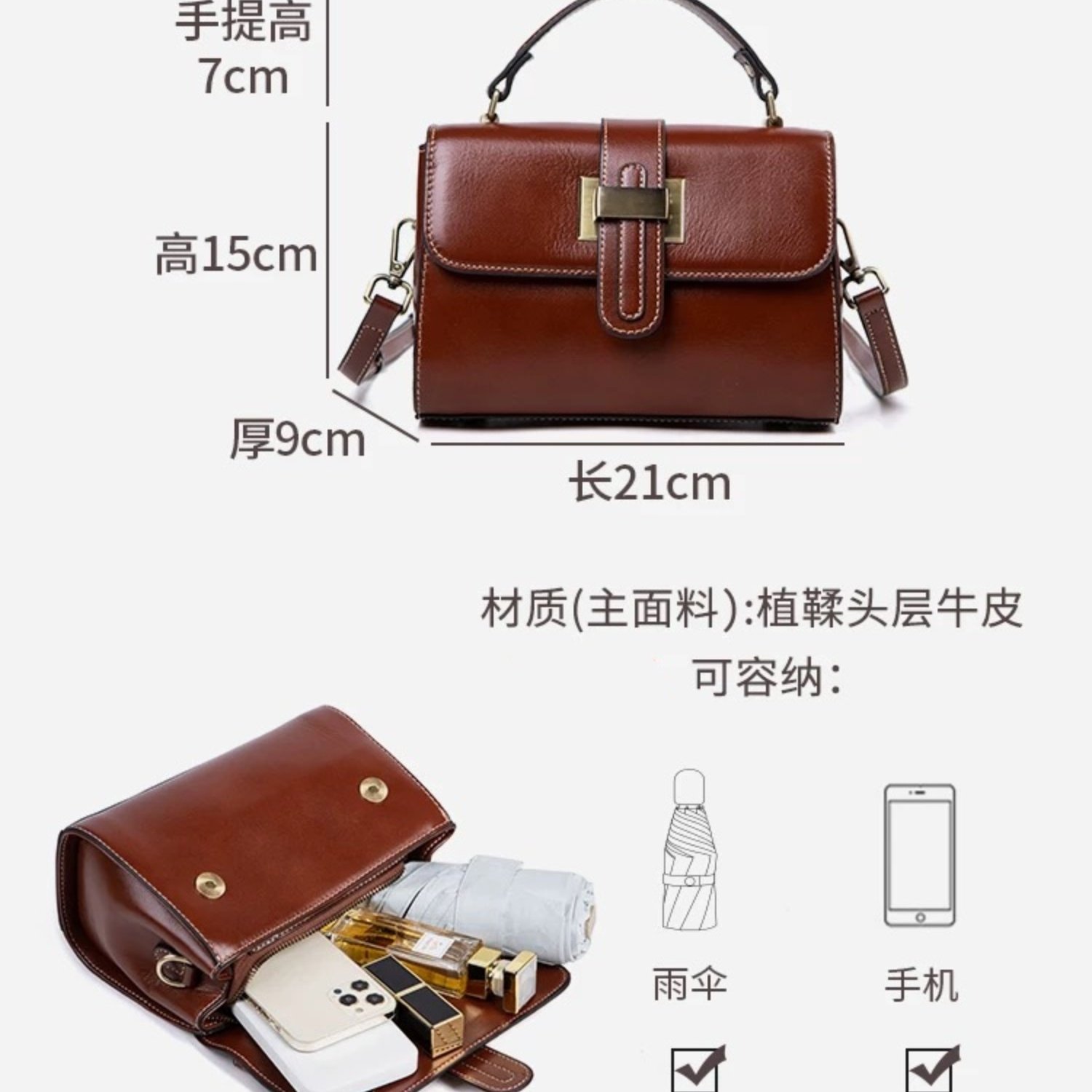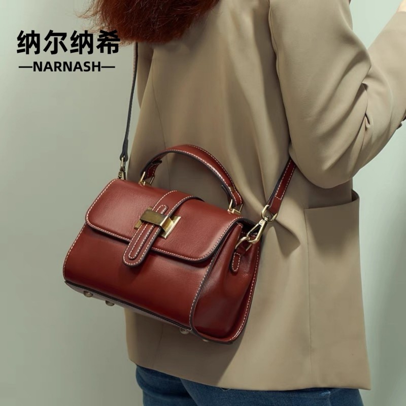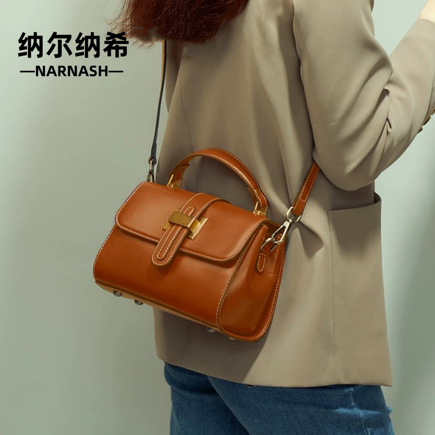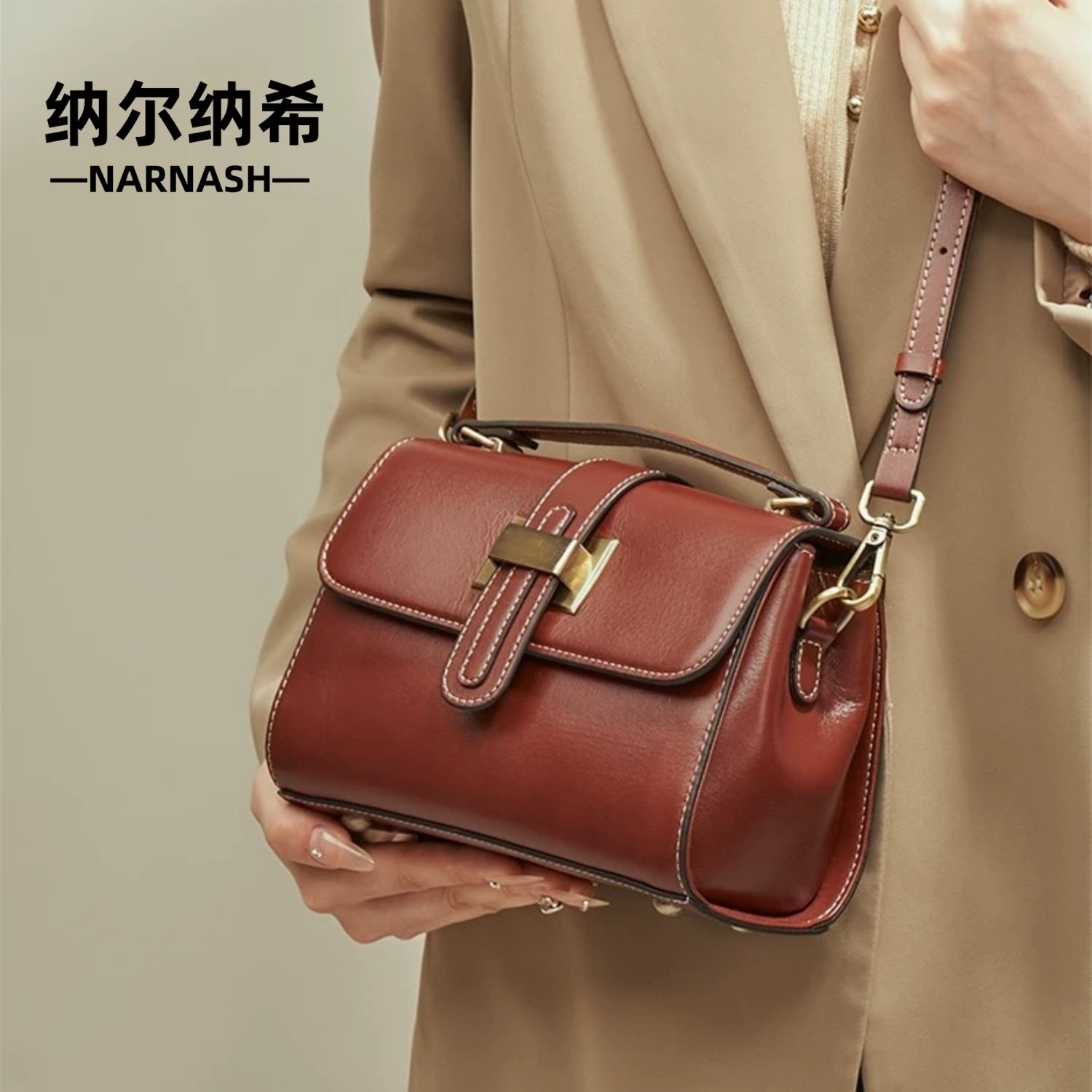 纳尔纳希头层牛皮小方包女包中年女士妈妈包轻奢手提包单肩斜挎包