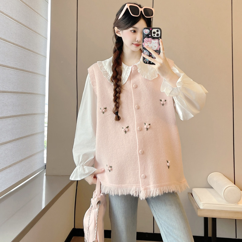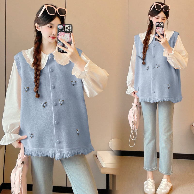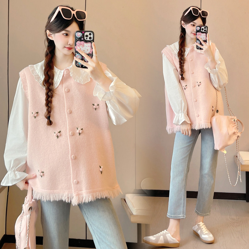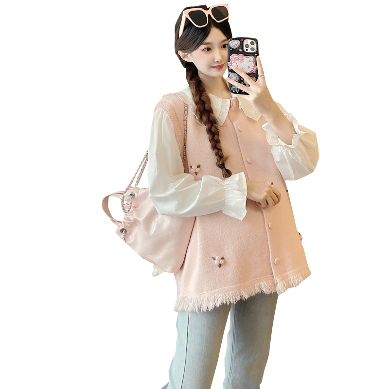 婧麒孕妇装2025新款秋冬装上衣女宽松显瘦长袖衬衣马甲上衣外套女
