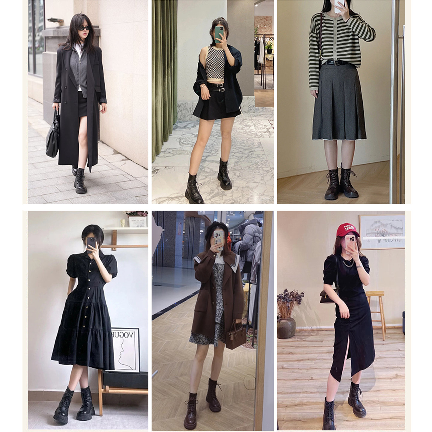 增高厚底复古女款2025新款小众方头松糕厚底jk短靴小个子马丁靴