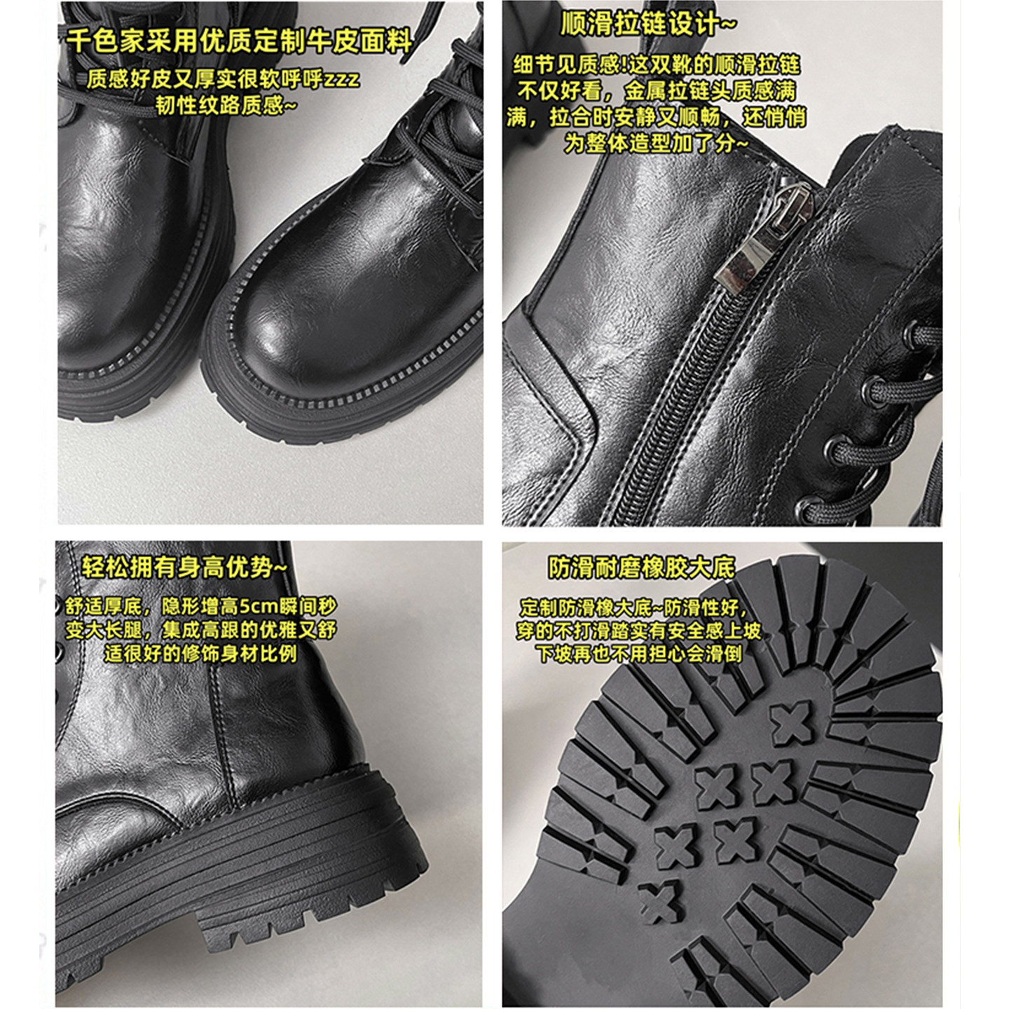 牛皮版~厚底马丁靴女2025新款爆款增高短靴小个子黑色英伦风靴子