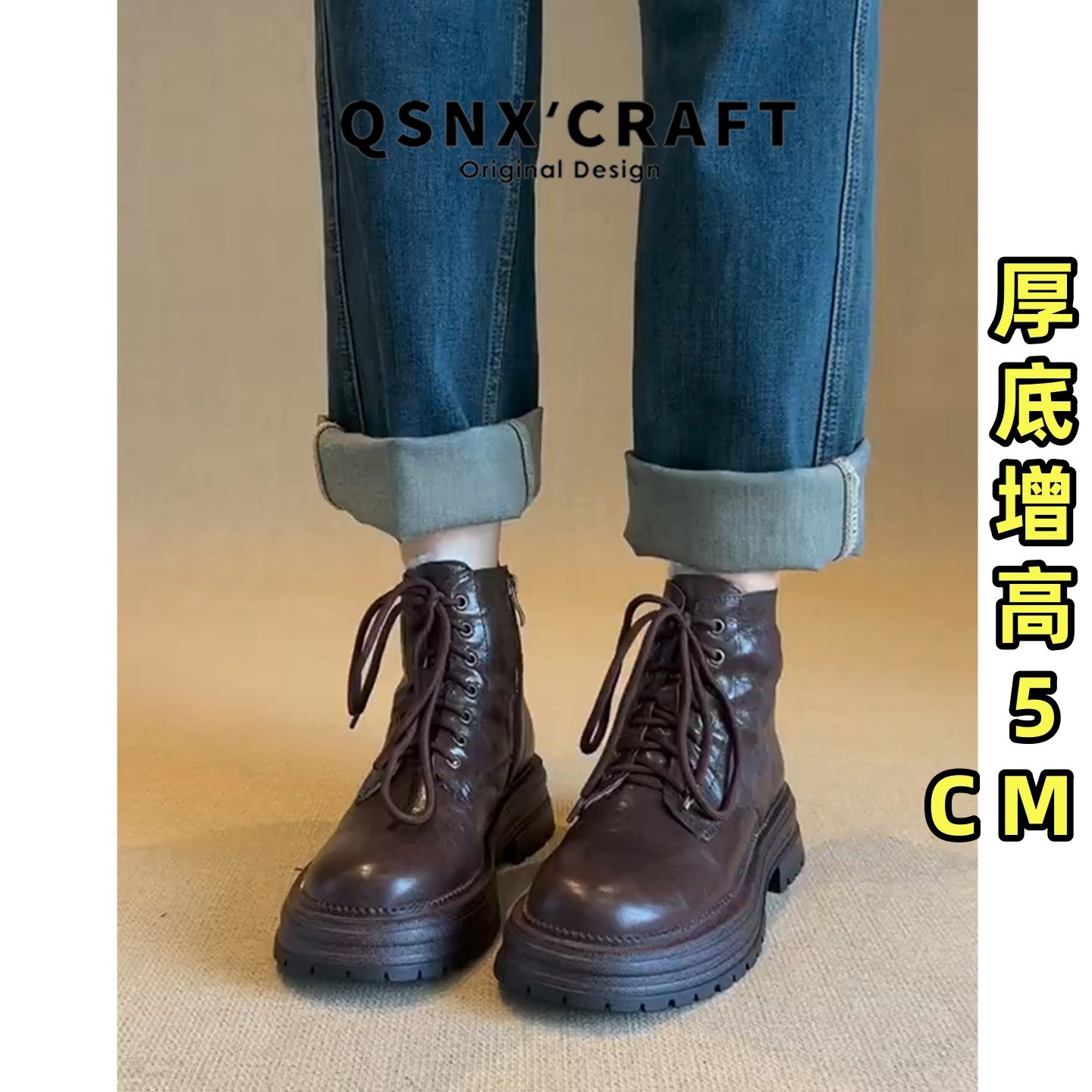 真皮版~棕色马丁靴女2025秋冬新款厚底增高短靴小个子英伦风靴子