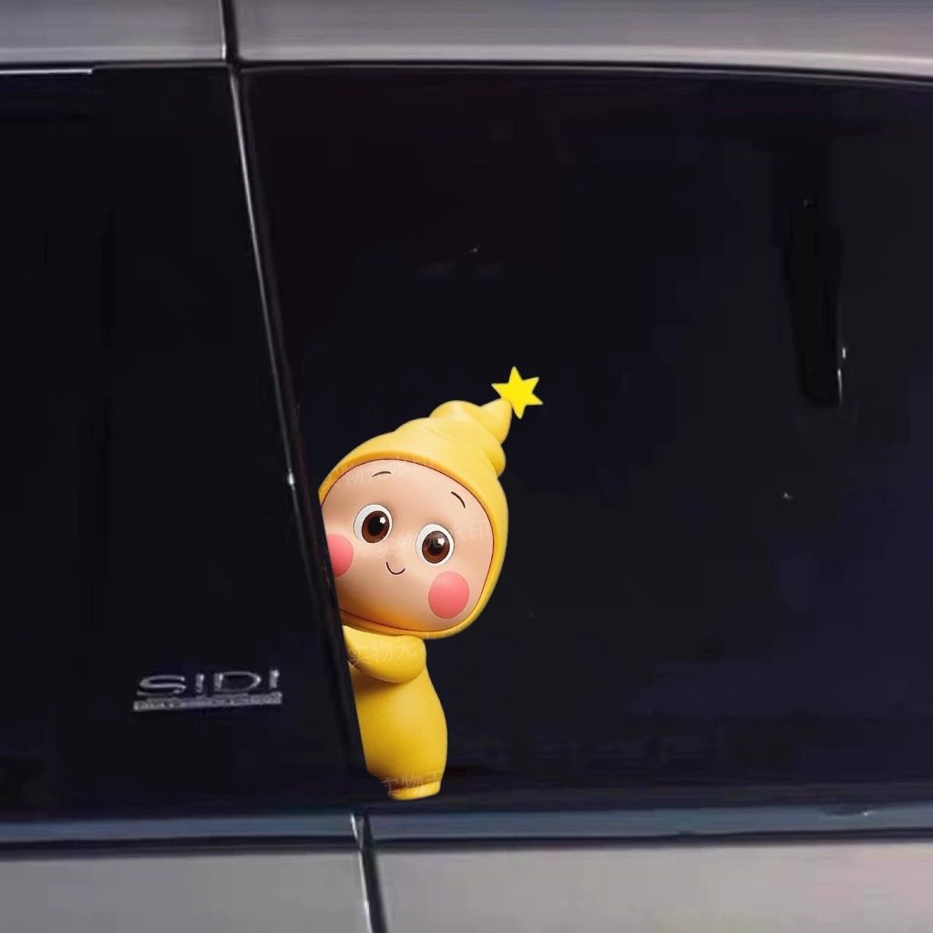可爱探头星星人趴窗创意汽车贴纸我们都是星星人汽车划痕遮挡贴画