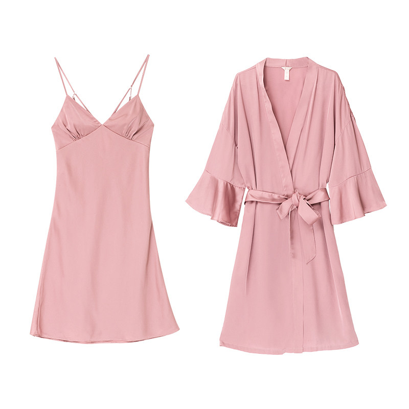 丝绸浴袍睡裙省心搭配套装