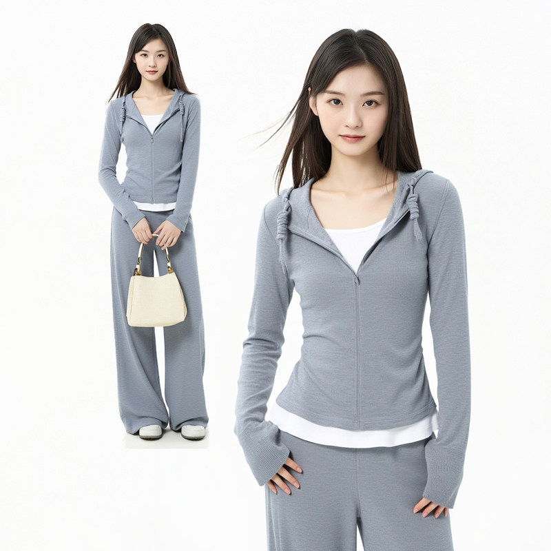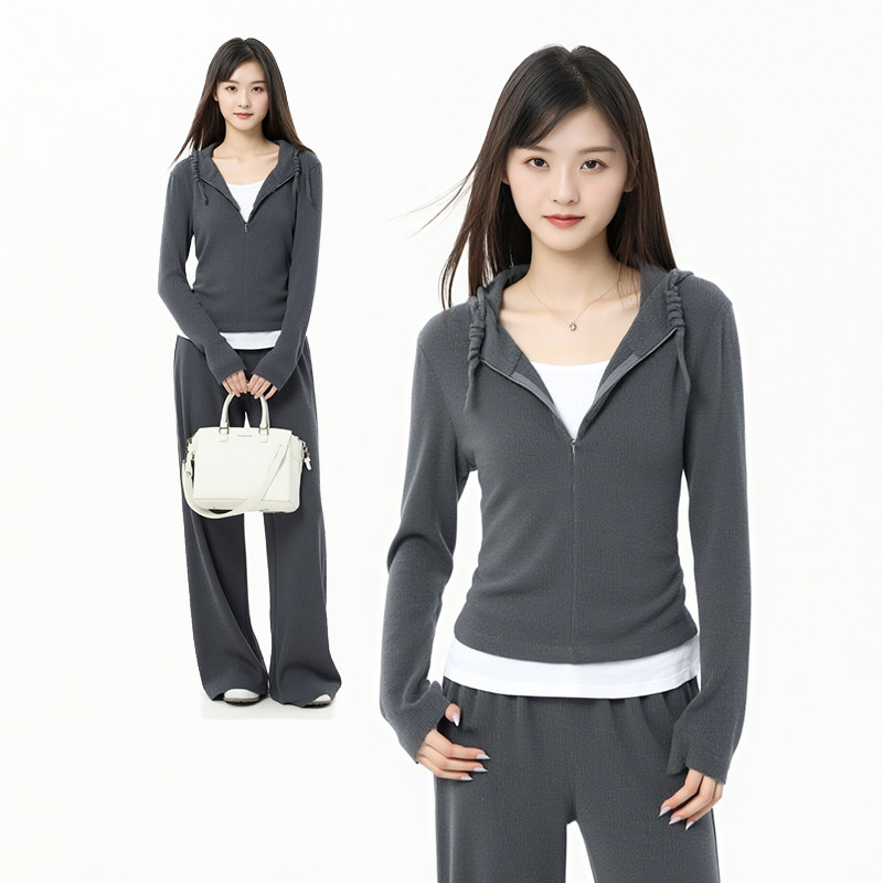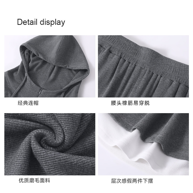 eihey诶嘿时尚简约宽松休闲小众连帽拉链外套长裙半身裙两件套女