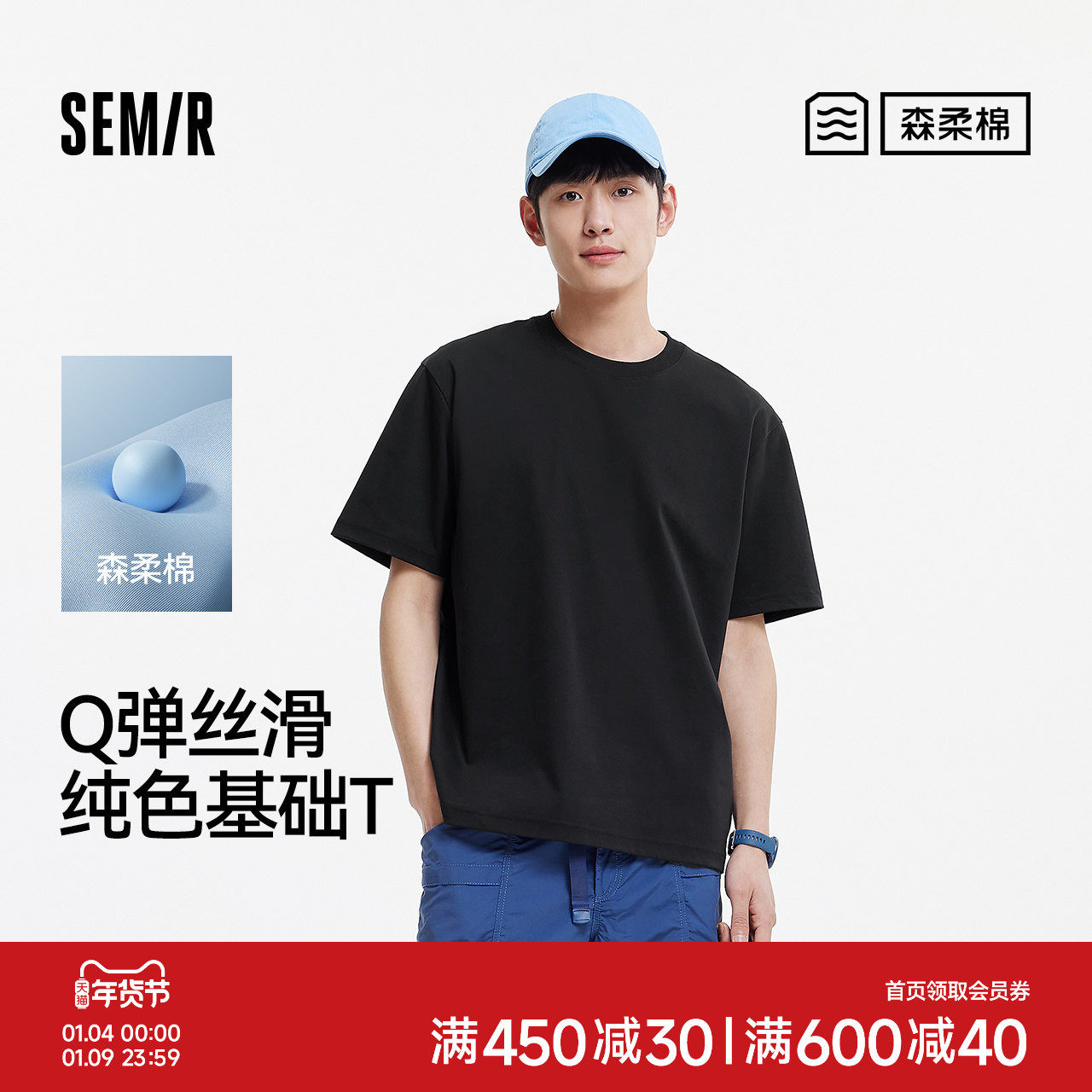 森柔棉液氮保型商场同款森马短袖T恤男纯色百搭白色2025夏季新款