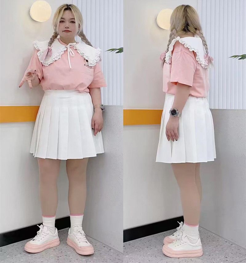 百褶裙女小个子夏季新款高腰显瘦半身裙纯色大码学院风jk短裙套装