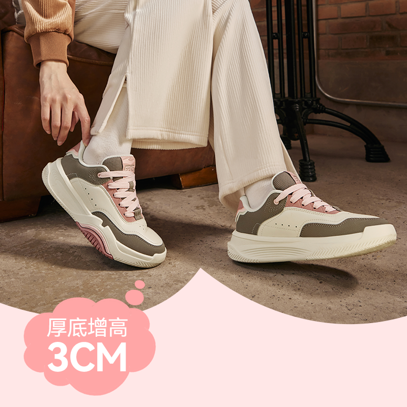 安踏轻松丨板鞋小白鞋女潮流冬季学生厚底增高运动鞋子轻便休闲鞋