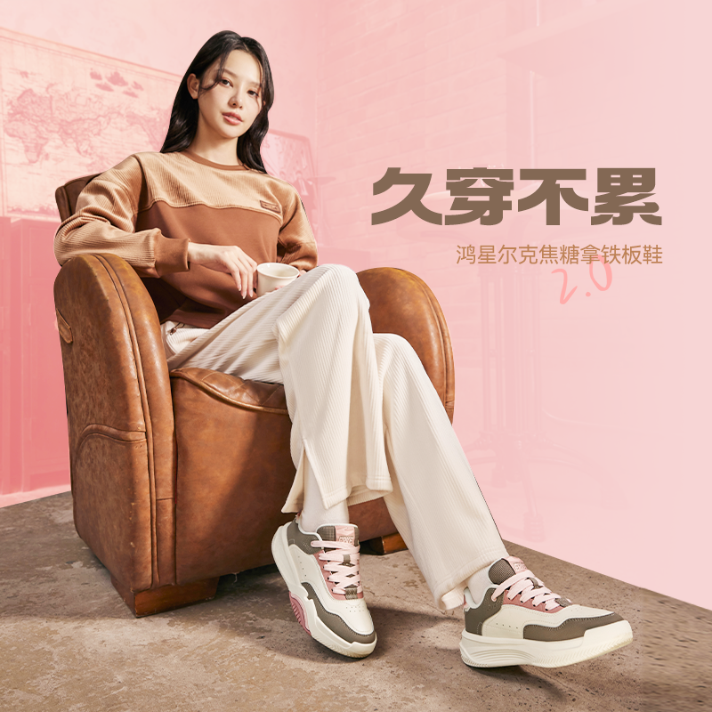 鸿星尔克焦糖拿铁女鞋冬季新款板鞋女士休闲鞋厚底鞋子百搭运动鞋