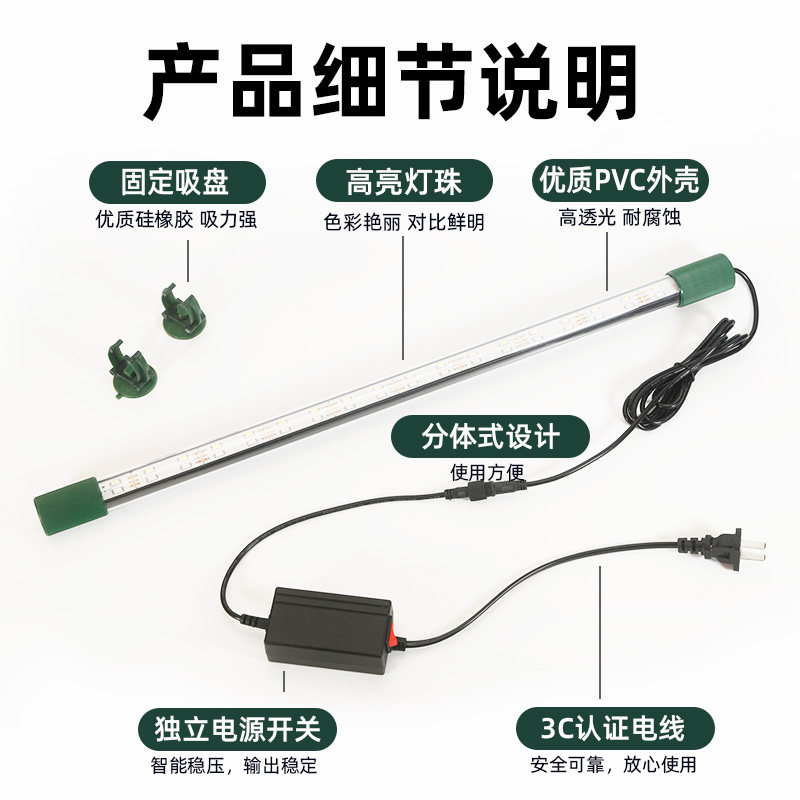 鱼缸灯led防水超亮三基色12000k白光三变色水族灯照明红鱼增艳灯