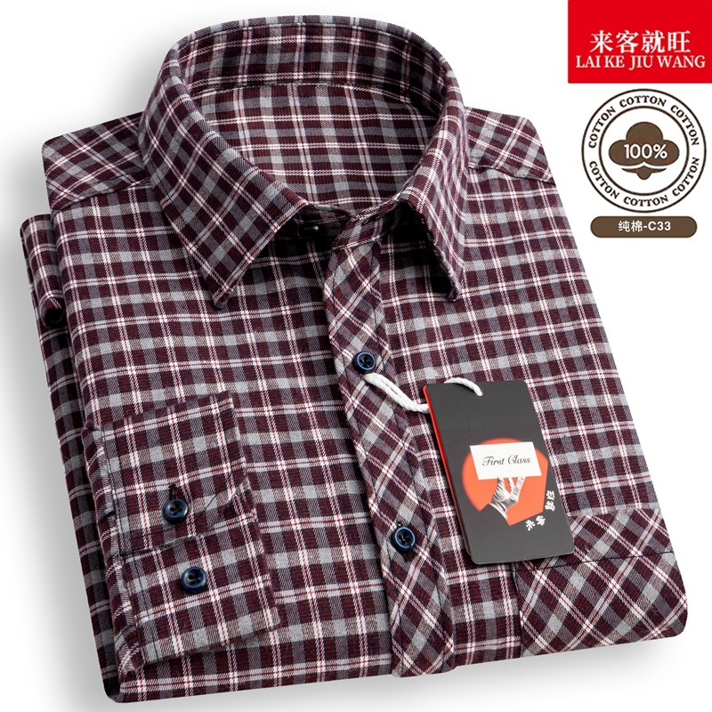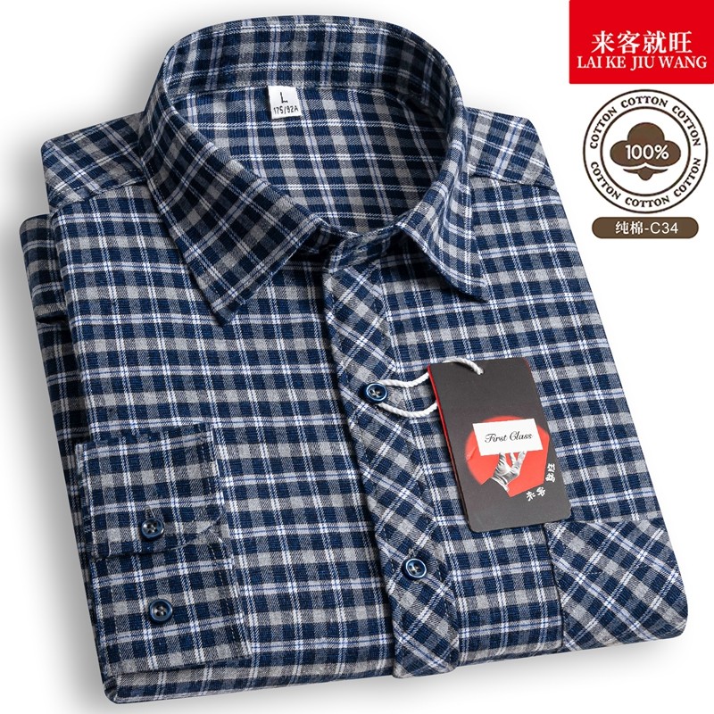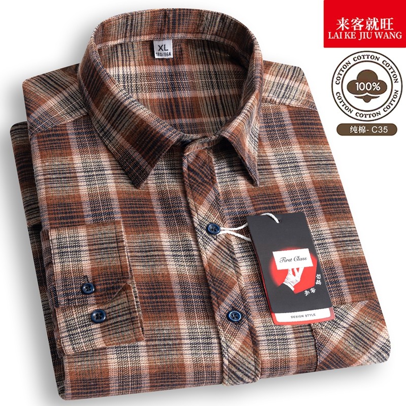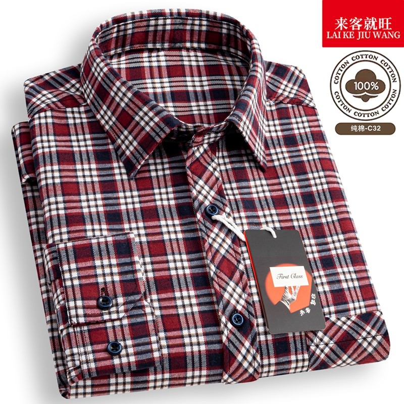 【清仓特价】纯棉男士长袖衬衫全棉磨毛格子衬衣商务休闲爸爸装