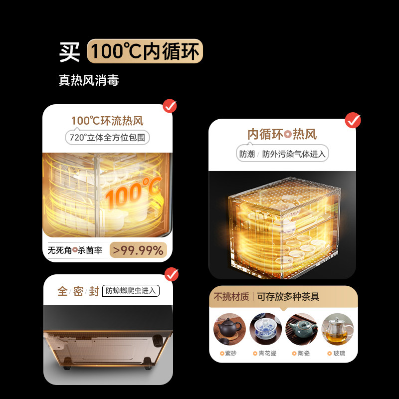 康宝新品茶杯紫外线消毒柜小型办公室茶杯收纳消毒家用桌面烘干柜