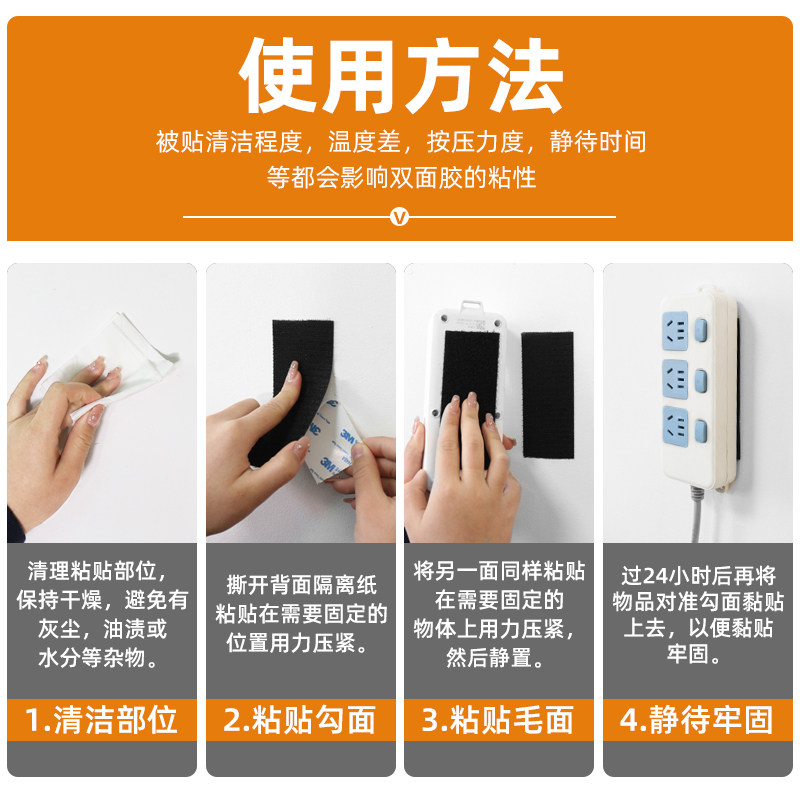 3m魔术贴双面带背胶高粘固定免打孔自粘式无痕窗帘床帘勾毛面粘贴