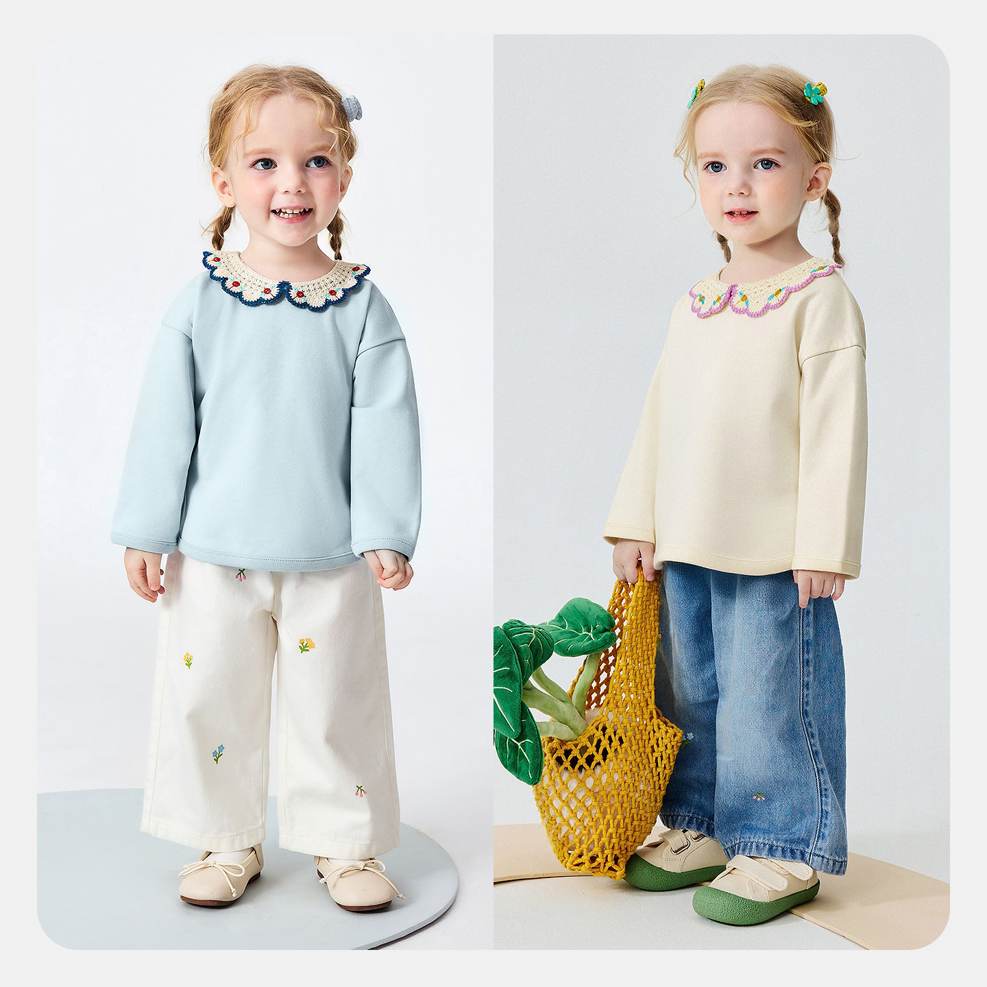 迷你巴拉女童宝宝卫衣2026春季新品有型小花领子甜美可爱翻领上衣