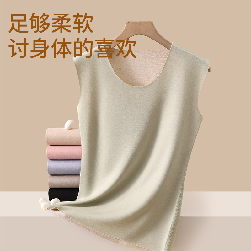 雅鹿加绒保暖背心女士秋冬季无痕发热内衣羊绒蚕丝内搭打底衣白色