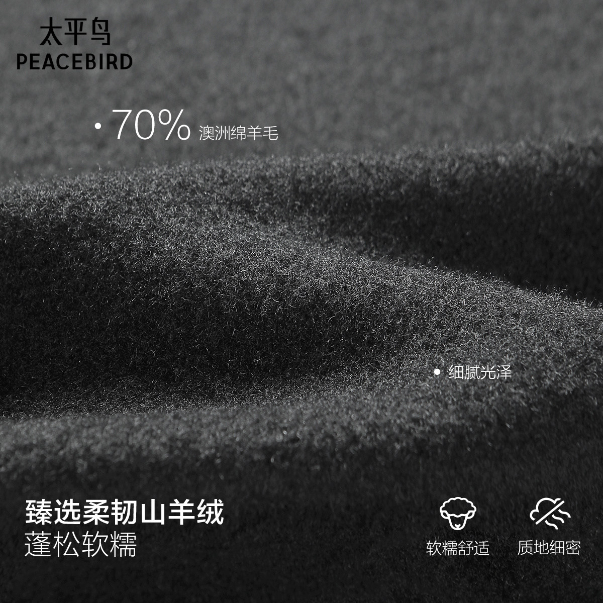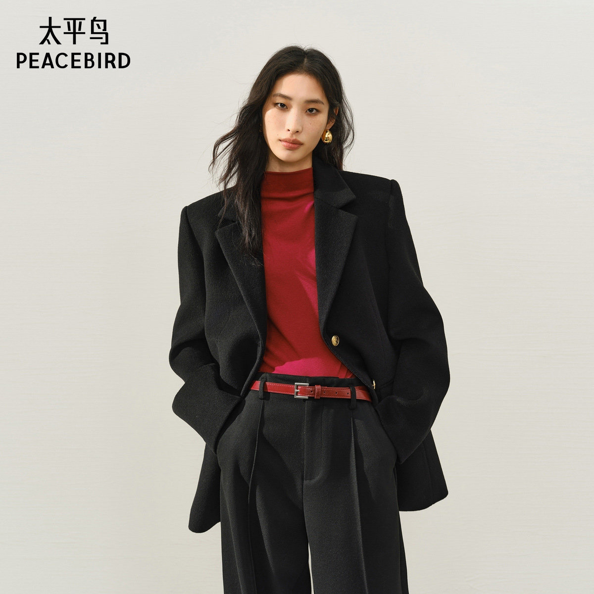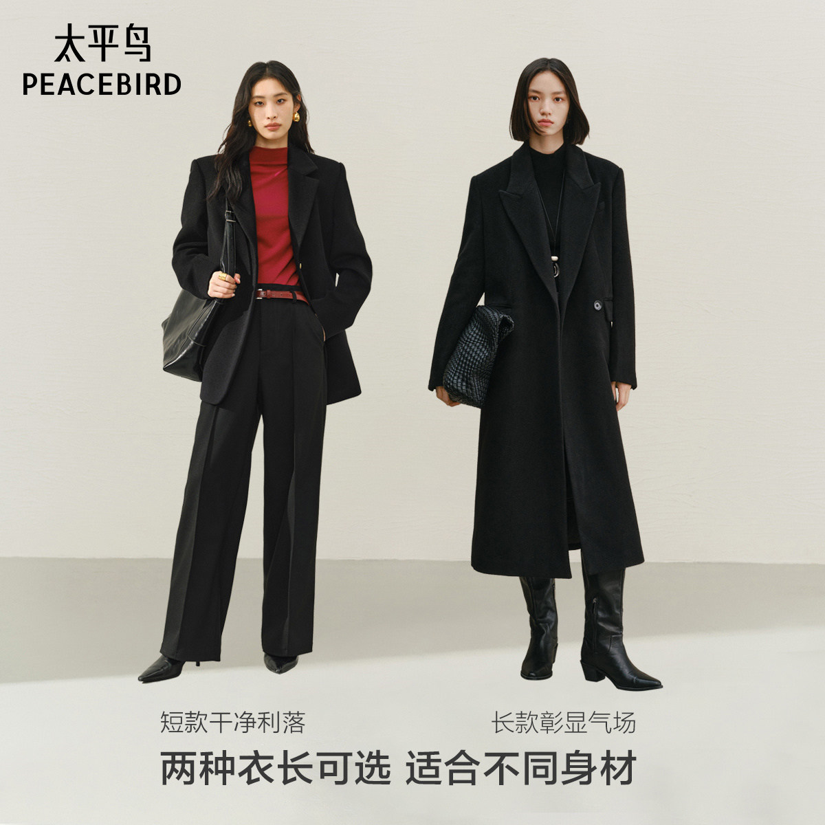 太平鸟大师甄毛系列西装式黑金羊毛大衣女25新款时尚气质呢大衣*