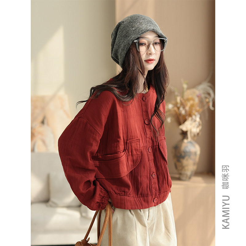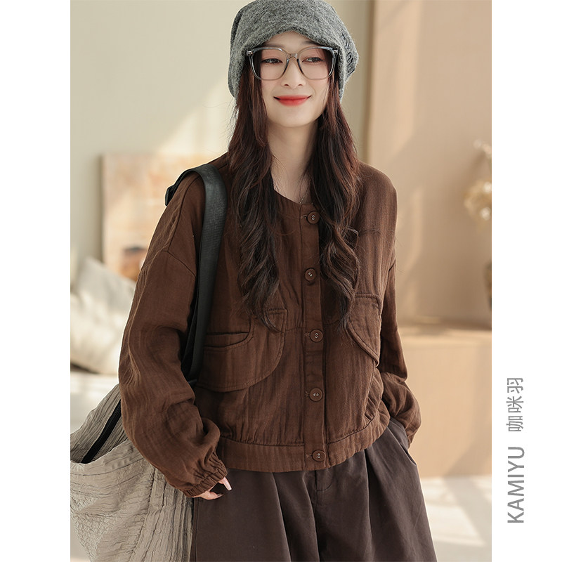 咖咪羽100%棉外套女秋装新款女士米色百搭韩版简约时尚减龄女装潮
