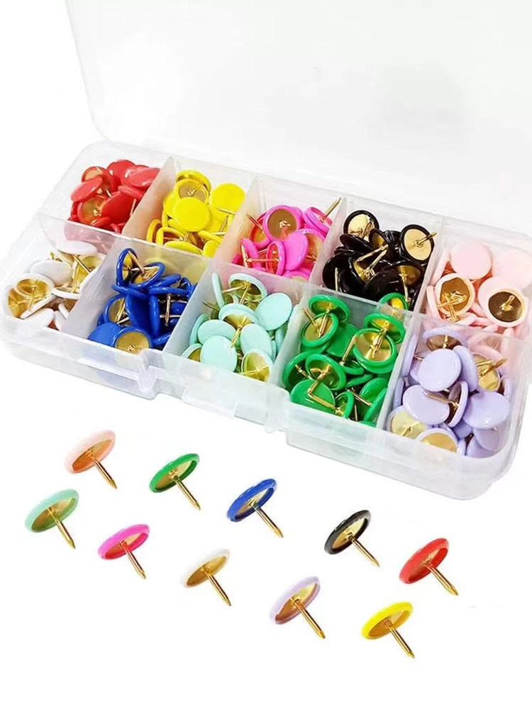 10格10色盒装彩色图钉包塑平头圆球钉工字钉大头钉软木毛毡板按钉