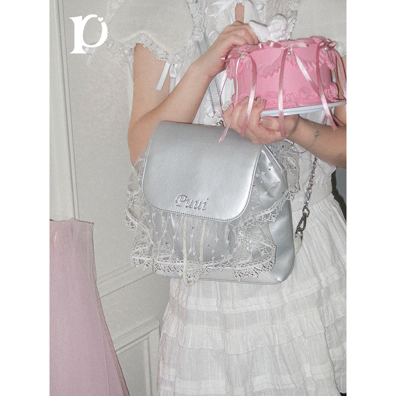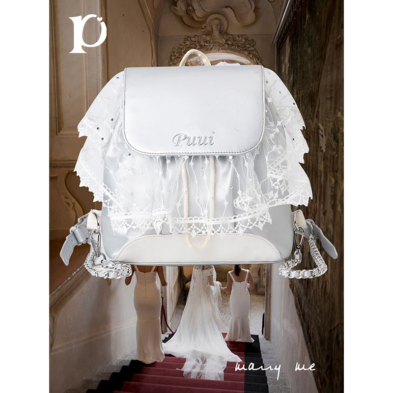 puui原创生活新款双肩包大容量蕾丝少女心背包个性艺术创意婚包
