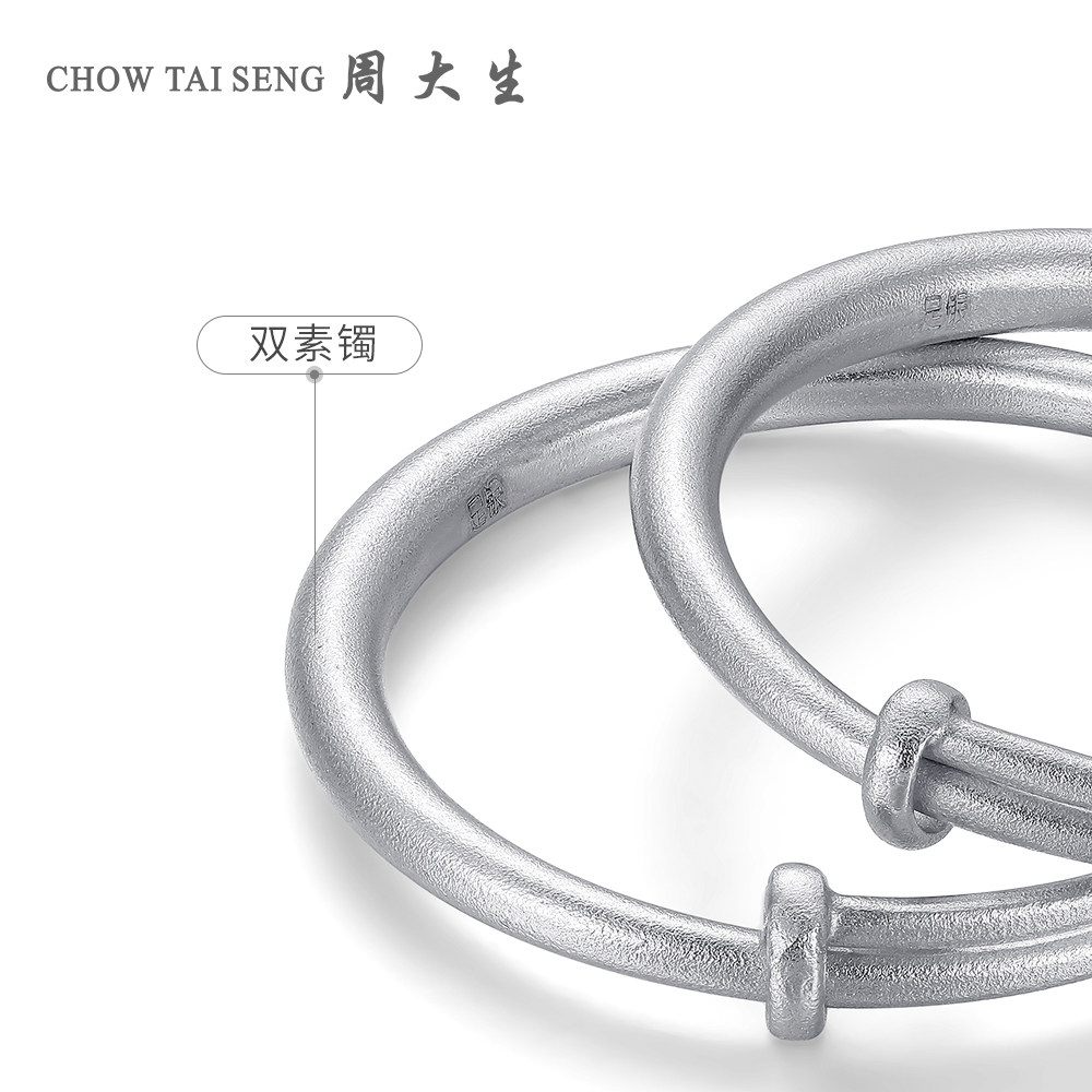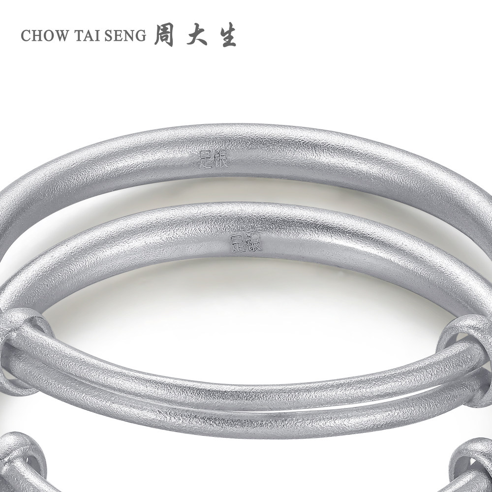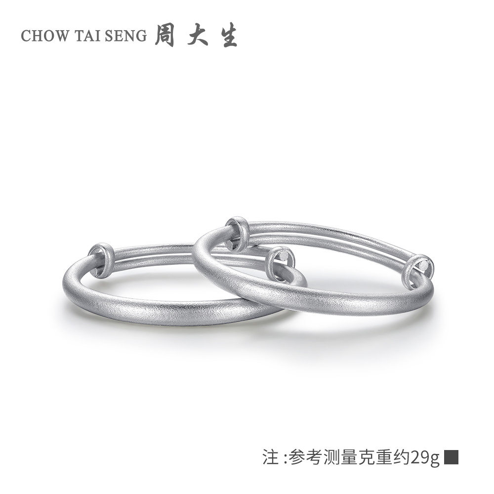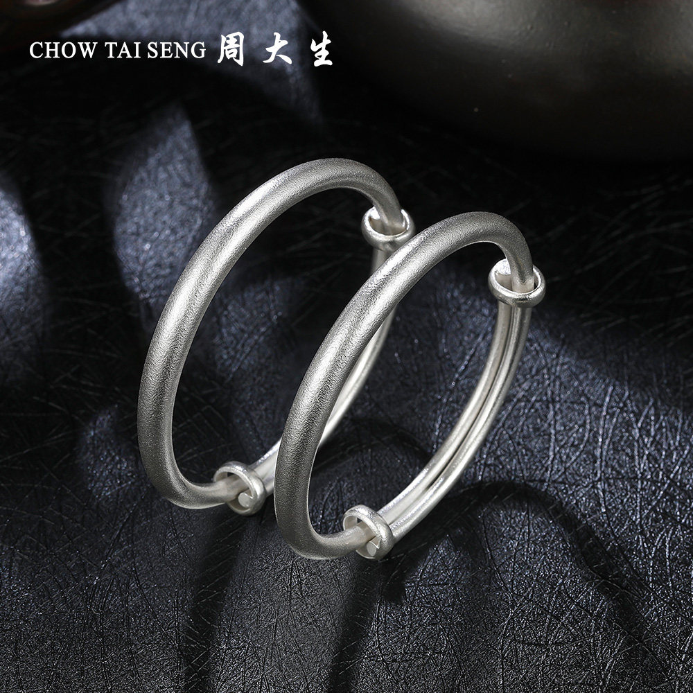 周大生宝宝纯银手镯一对S990镯子男女儿童婴儿一周岁礼物可刻字