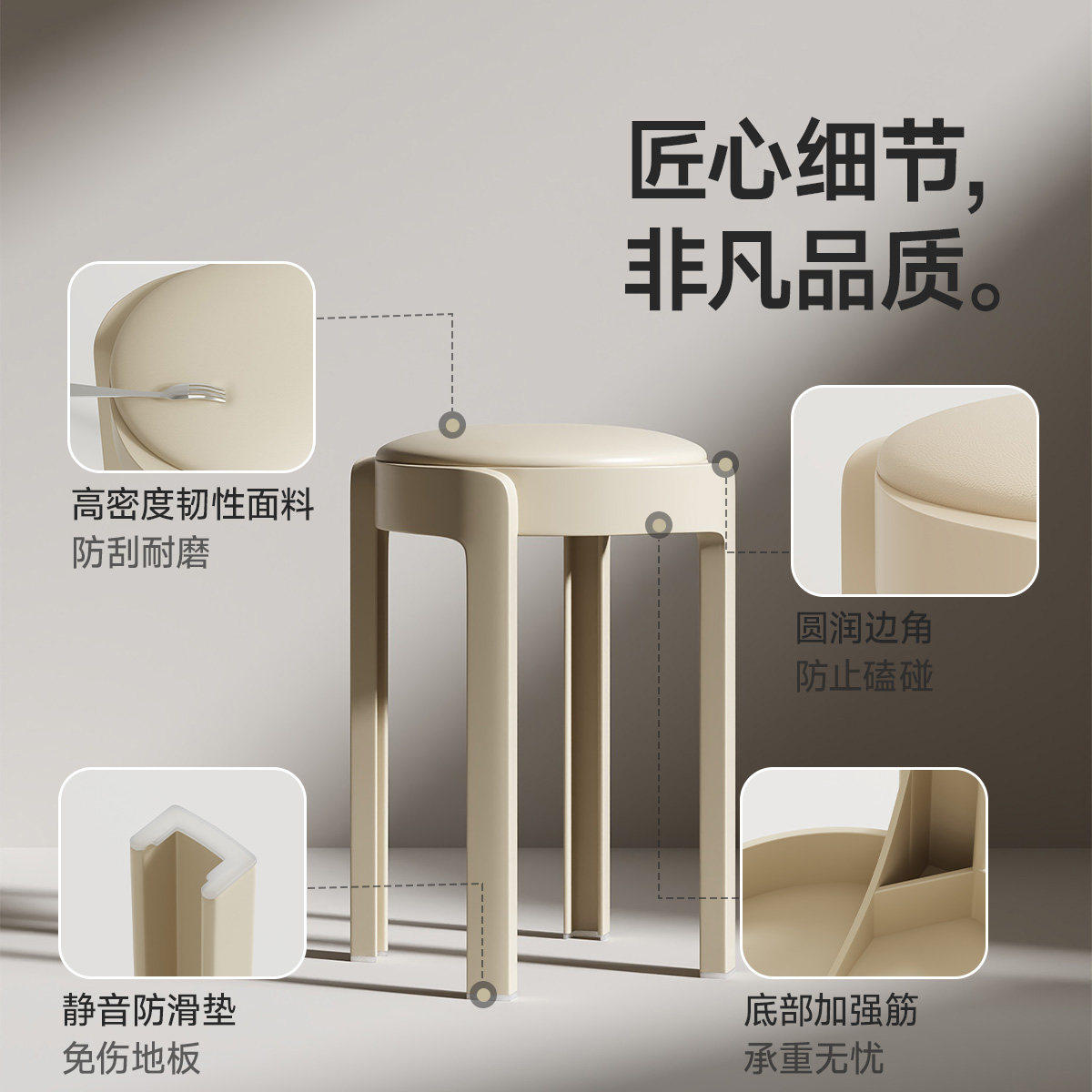 塑料凳子家用可叠放加厚餐椅结实耐用软包圆凳餐桌高板凳备用椅子