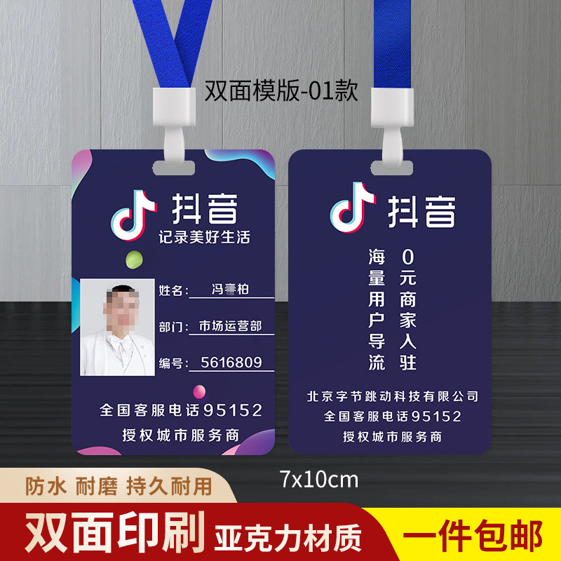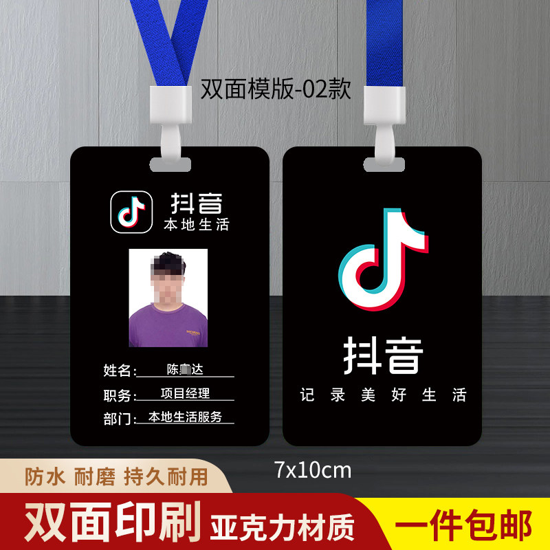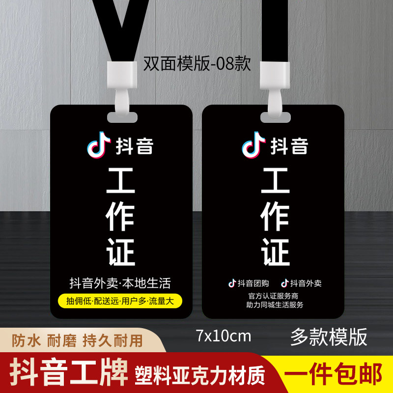 TikTok抖音工作牌抖音外卖工作证挂牌推广员地推吊牌胸牌定制打印