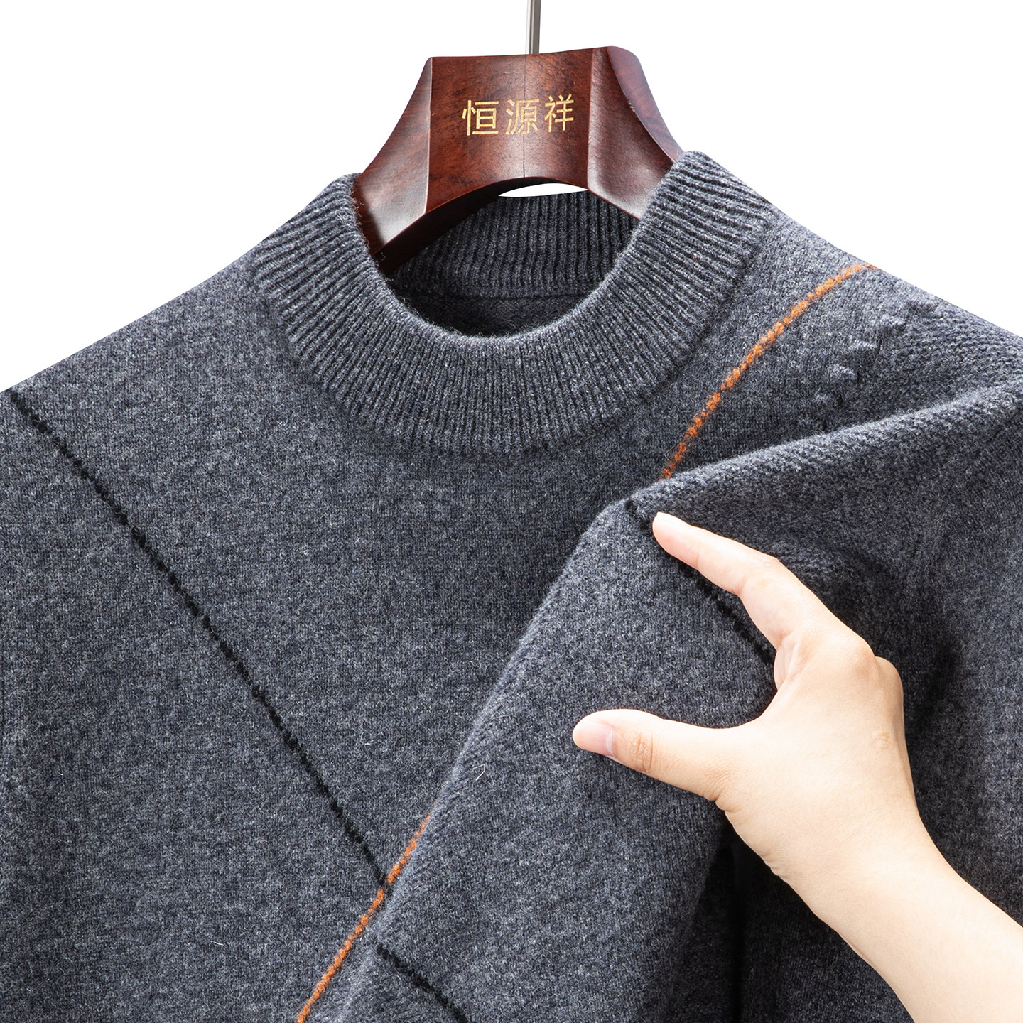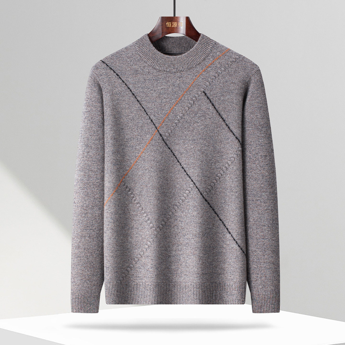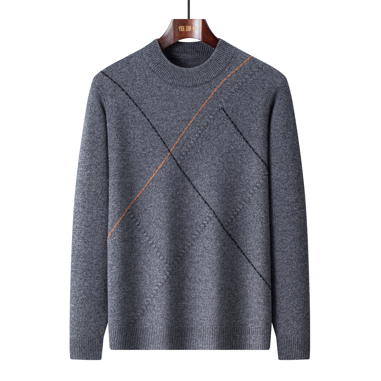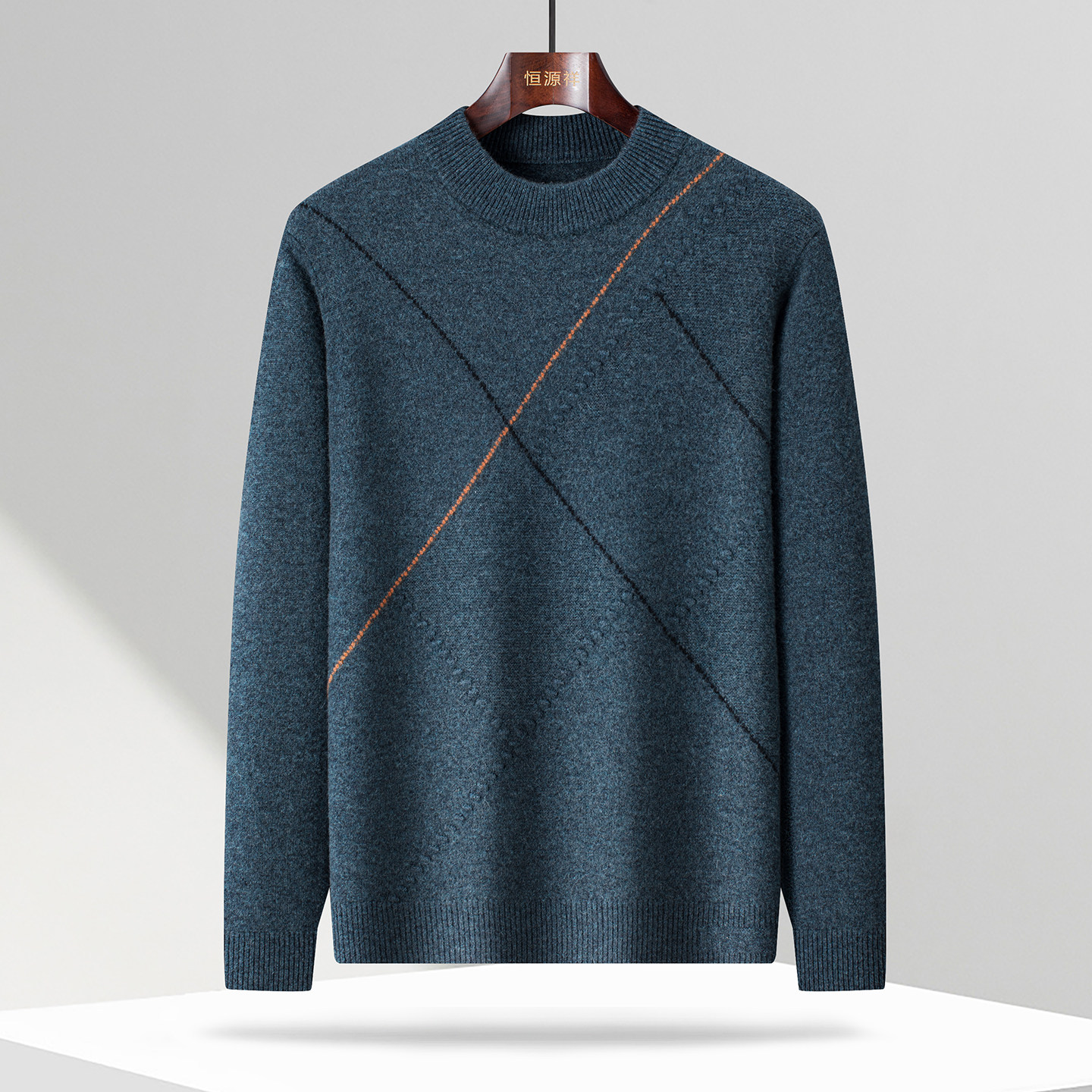 鄂尔多斯市半高领100%纯羊毛衫男休闲中厚保暖毛衣针织打底羊绒衫