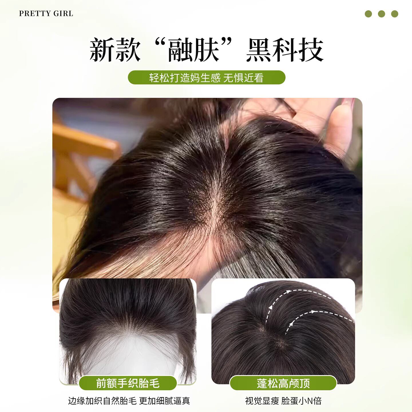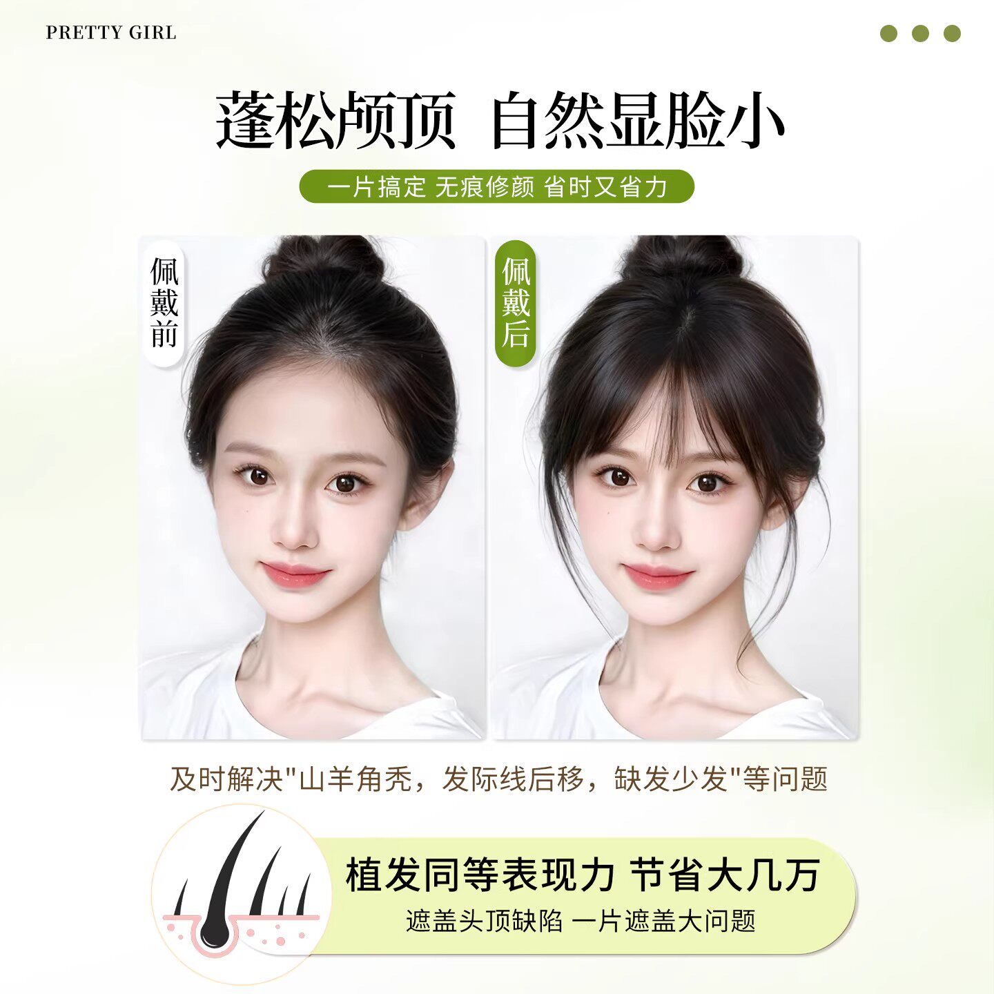 假发女片头顶补发蓬松颅顶增发量仿真发遮白发自然前额刘海补发片