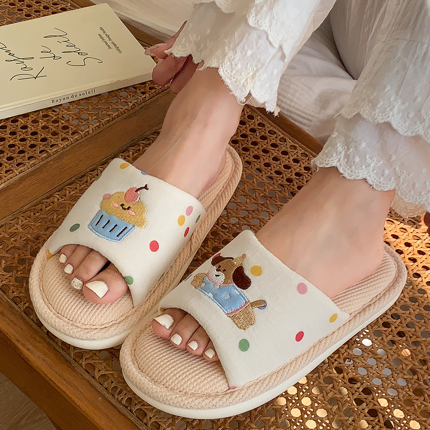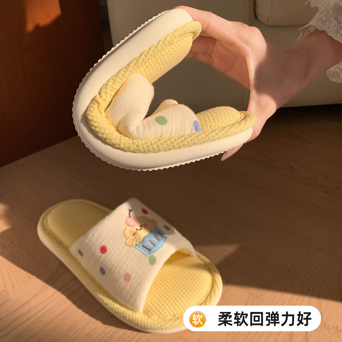 洁丽雅卡通亚麻拖鞋女士2026新款居家可爱地板透气棉麻布拖鞋四季