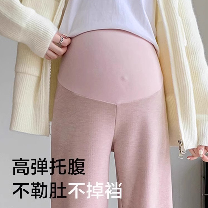 孕妇裤子春秋冬款外穿针织阔腿糯米裤加绒加厚孕妇装冬装孕期托腹